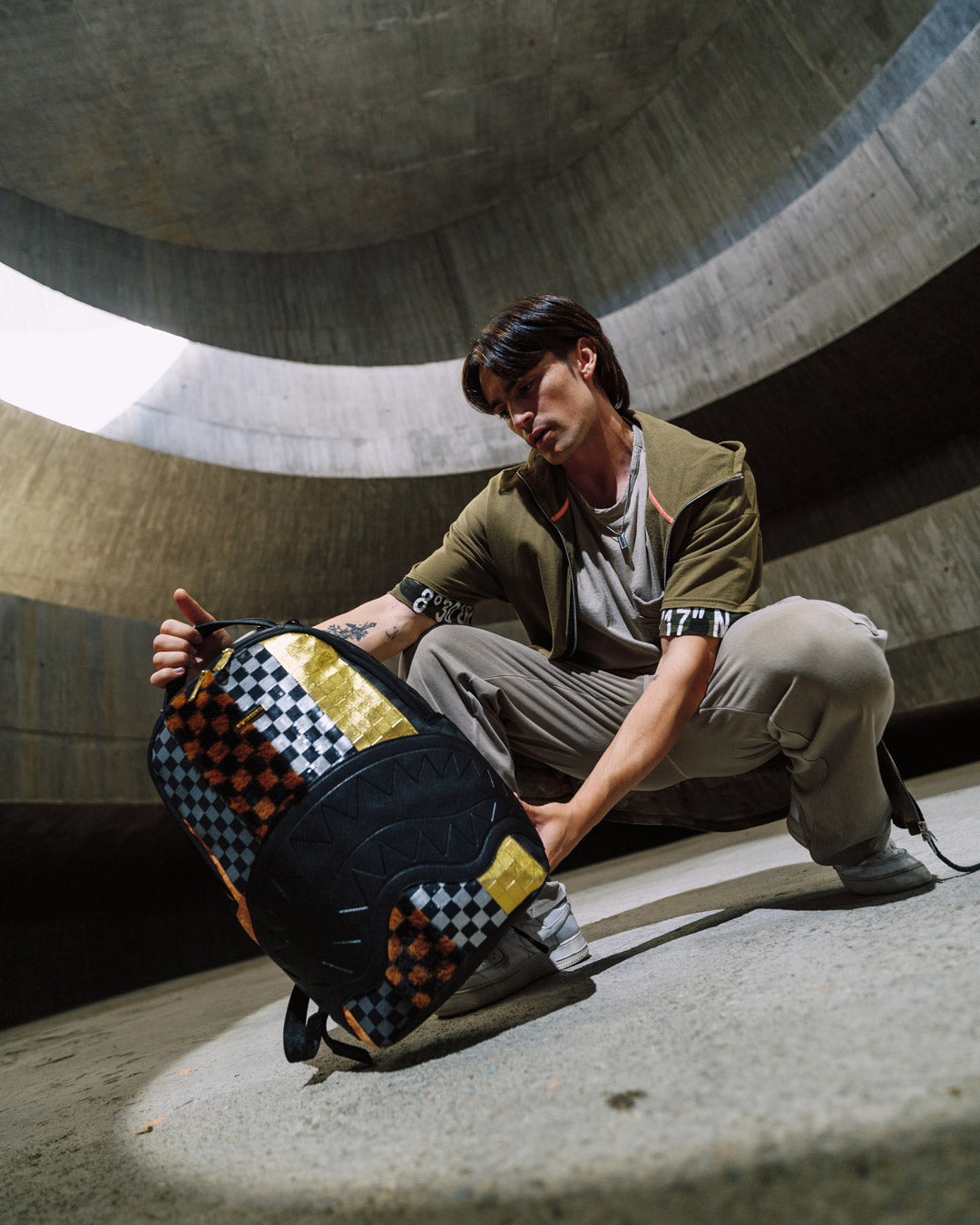 Dimensions: 18" x 6" x 11.5" • Front zipper pocket • Side pockets • Zippered Stash pocket • Separate velour sunglass compartment • Ergonomic mesh back padding • Adjustable Straps for custom sizing • Gold zippers with metal hardware • Metal "Sprayground Authentic" badge • Slide through back sleeve connects to carry-on luggage to free your hands