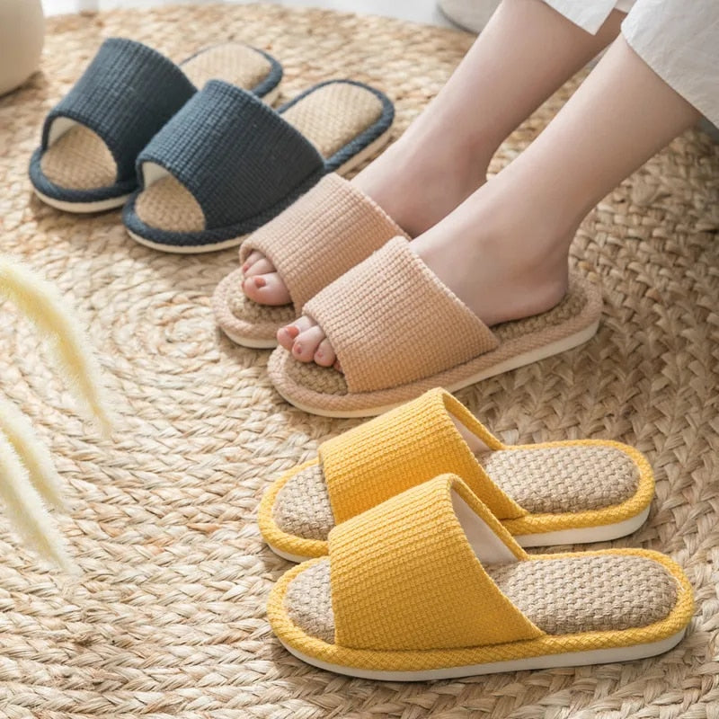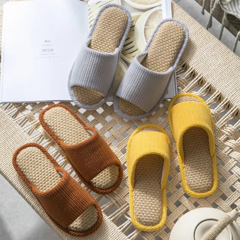 2022 New Fashion Linen Slippers For Women Men All Season Home Shoes Indoor Slippers Flip Flops Female Flax Slides Flat Sandals
