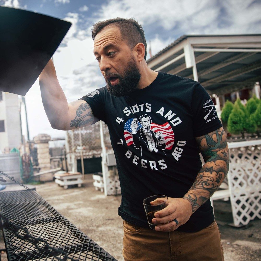 “4 shots and 7 beers ago…” our forefathers brought forth a savage night of freedom, debauchery, and questionable decisions. The 4 Shots T-Shirt in Black is a hilarious twist on Honest Abe’s most iconic speech—perfect for patriots who prefer their history a little hazy and their freedom ice cold.