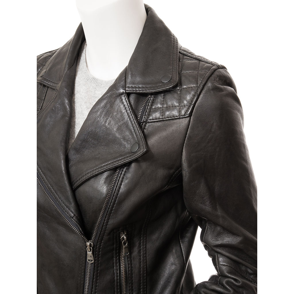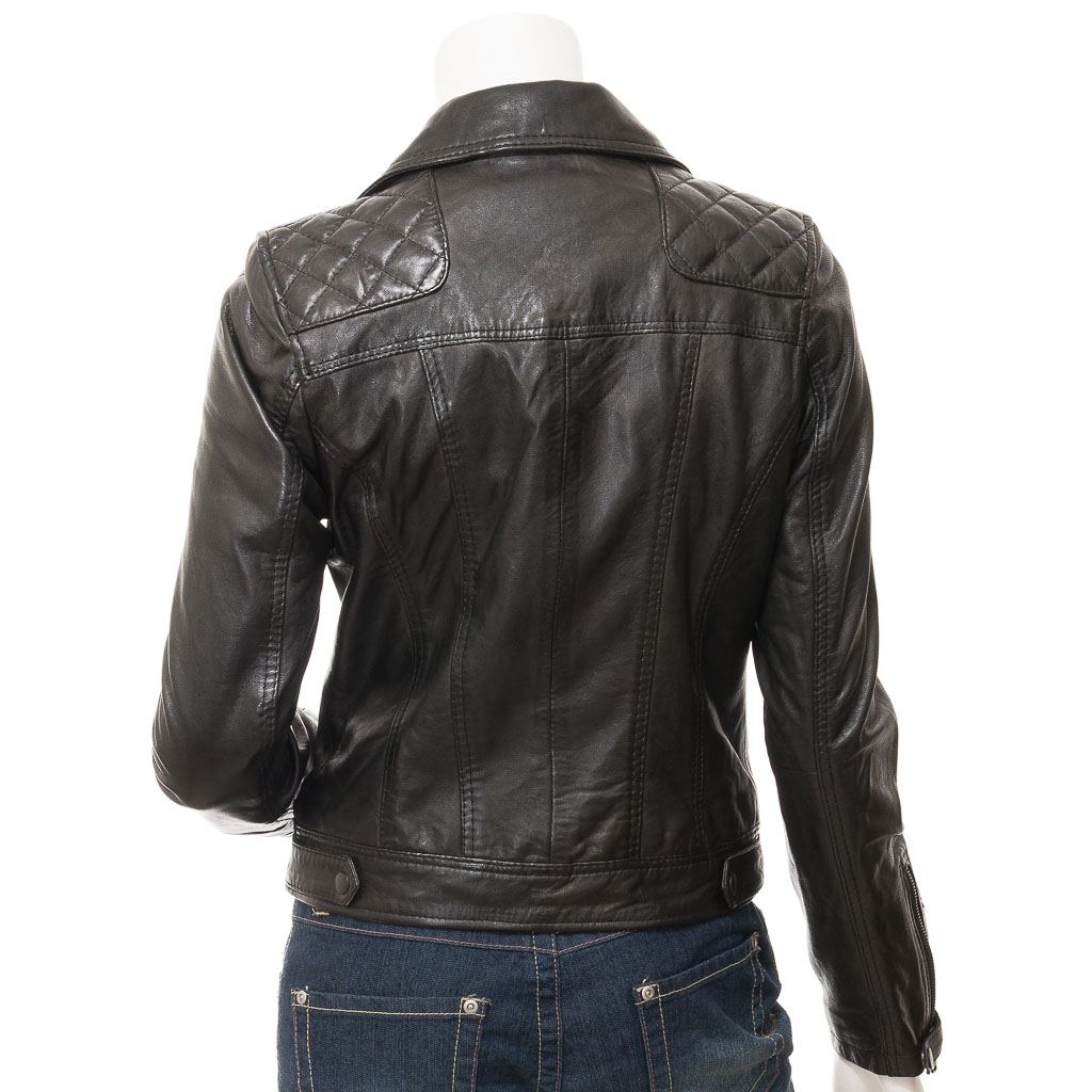 WOMEN'S BLACK LEATHER BIKER JACKET: ANNSVILLE
