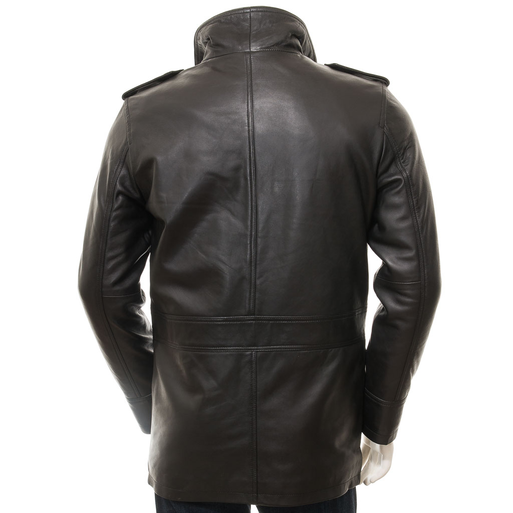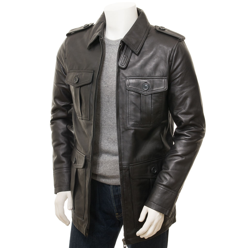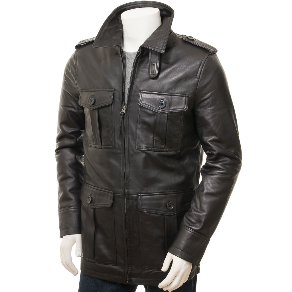 MEN'S CLASSIC BLACK LEATHER COAT: CARROLL