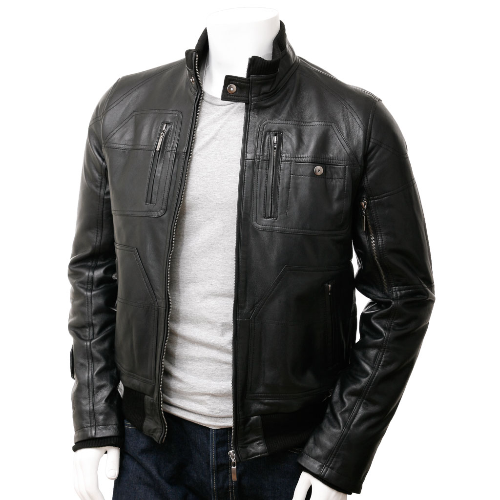 MEN'S LEATHER BOMBER JACKET IN BLACK: GATES