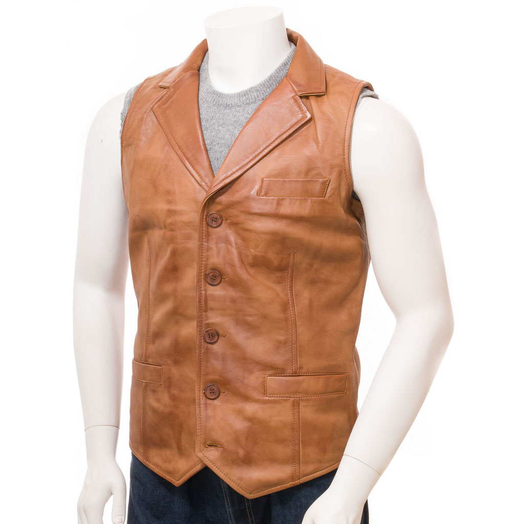MEN'S CLASSIC TAN LEATHER VEST: DANBY