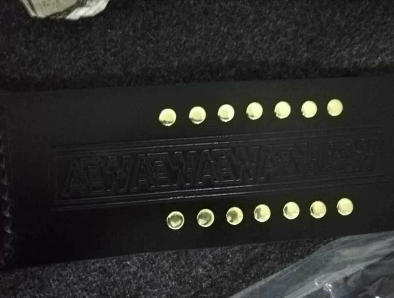 championship belt. The etching for this belt is deep and perfect according to the TV Accurate artwork. There is also an AEW Gold Tip with this belt, making it more beautiful for the belt lover. The backing of this belt is of real leather, and it doesn't come with raksin (synthetic leather). The length of this stunning