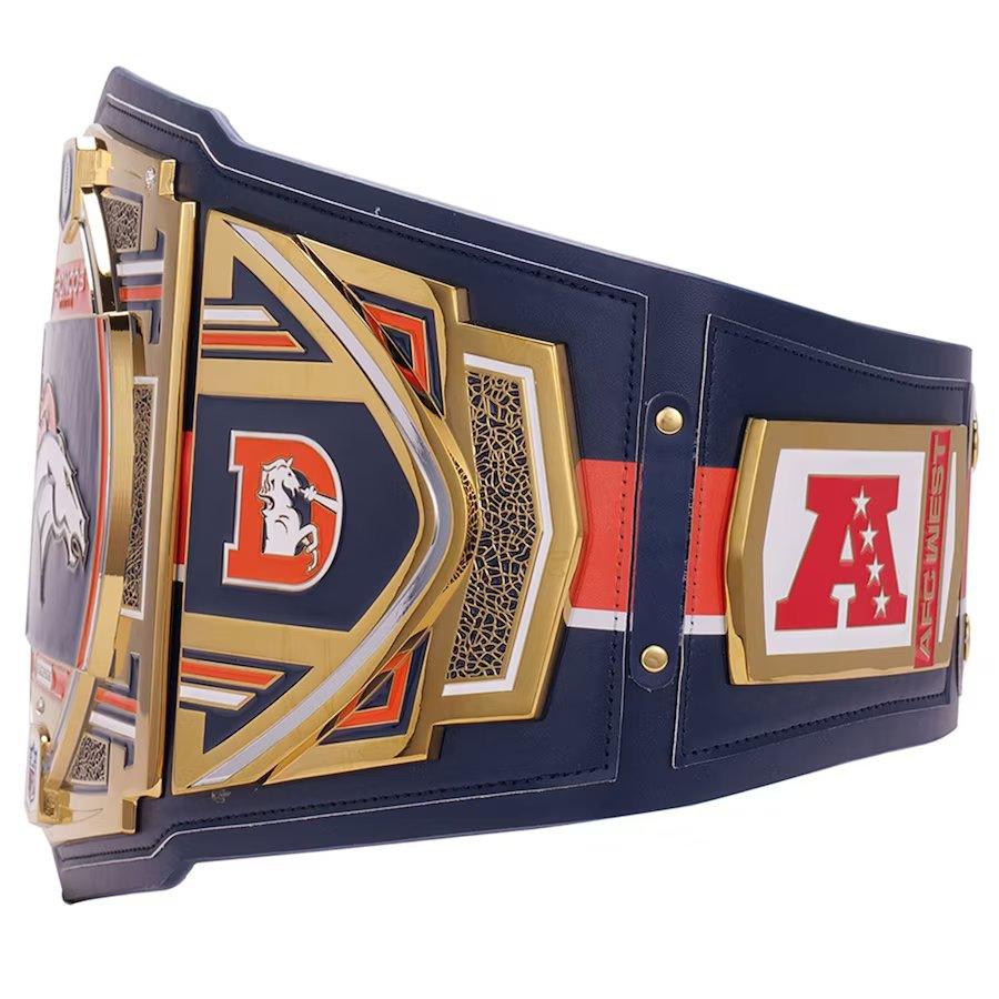 Denver Broncos Championship Belt is a majestic tribute to a team that galvanizes its fans with spirit and determination. This belt encapsulates the essence of the Broncos' journey, intertwining their rich history with the hopes and dreams of their passionate fanbase. Adorned with the
