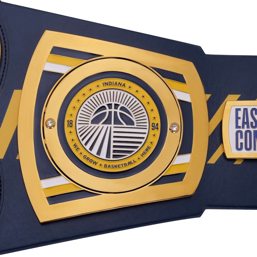 Embrace the spirit of Indiana basketball with the Indiana Pacers NBA Championship Belt. The iconic "P" logo, set against a backdrop of navy, gold, and white, captures the team's rich history and the unwavering dedication of its fans. This Championship Belt is more than just a symbol of victory; it's a tangible connection to the Pacers' legacy, a reminder of the electrifying atmosphere at Gainbridge Fieldhouse, and a testament to the belief in a future filled with championship glory.