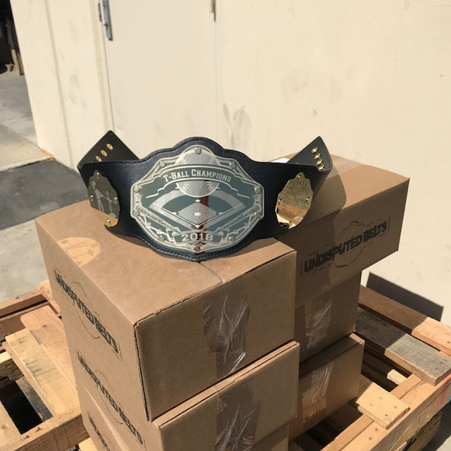 Youth/kid size championship belts.  Make a custom championship belt for that star kid in your life!  Whether it's tee-ball, baseball, football, academics or anything!