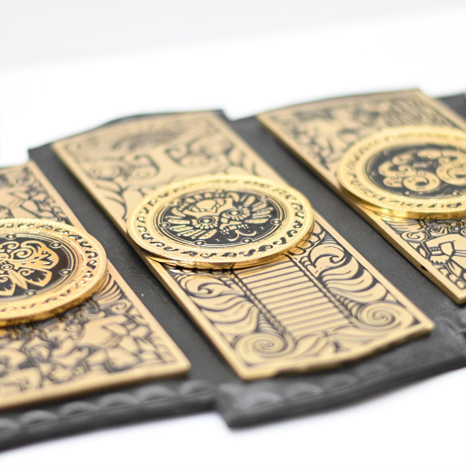 * GOLD PLATED BRASS/ZINC METAL PLATES, GOLDEN TIP ON THE END OF BELT