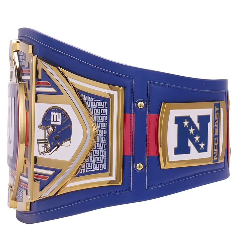 Championship Belt is a masterpiece that echoes the storied history of one of the NFL's iconic franchises. It's more than just a belt; it's a testament to the resilience, the triumphs, and the unwavering loyalty of Giants fans. The centerpiece proudly displays the Giants' legendary NY logo, set against a striking blue and red backdrop that mirrors the team's iconic colors. Crafted with meticulous care, every detail of this belt is a tribute to the unforgettable moments and the indomitable spirit that define the Giants. The premium materials and adjustable leather strap ensure both durability and comfort, making it a cherished item for any Giants enthusiast. This belt isn't just an accessory; it's an emotional journey, a celebration of every Super Bowl victory, every iconic catch, and the enduring love for the Giants. It's a tangible reminder of the history, the glory, and the passion that are synonymous with New York Giants football.