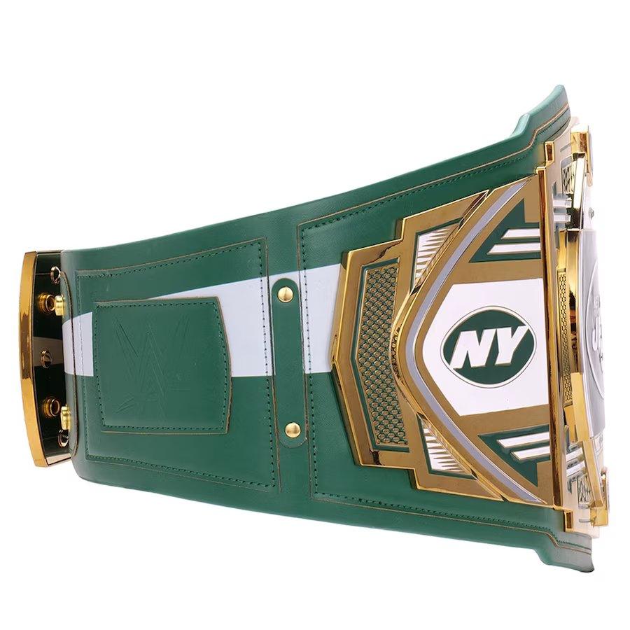 Championship Belt is a testament to the enduring spirit of a team that has faced every challenge with unwavering determination. This belt is more than just an accessory; it's a symbol of the resilience, the dreams, and the unbreakable bond between the Jets and their loyal fanbase. The centerpiece proudly displays the iconic Jets logo, set against a backdrop of bold green and white, evoking the energy of MetLife Stadium on game day. Crafted with meticulous care, every detail of this belt reflects the grit and determination that define the Jets. The premium materials and adjustable leather strap ensure both durability and comfort, making it a cherished item for any Jets enthusiast. This belt is an emotional journey, a celebration of every touchdown, every heart-pounding game, and the shared hope and passion that unite the Jets community. It's a tangible reminder of the history, the resilience, and the unwavering love for the New York Jets.