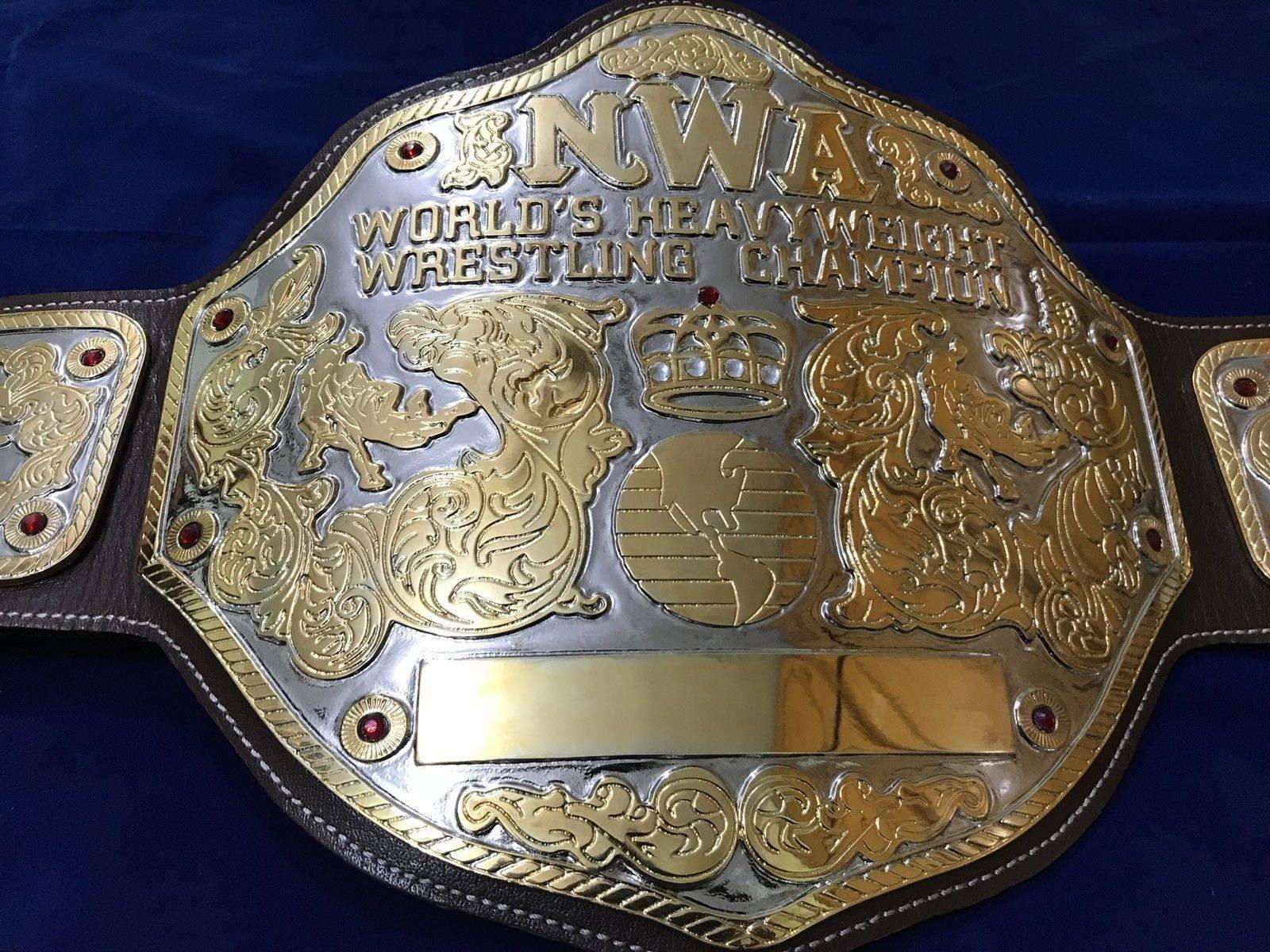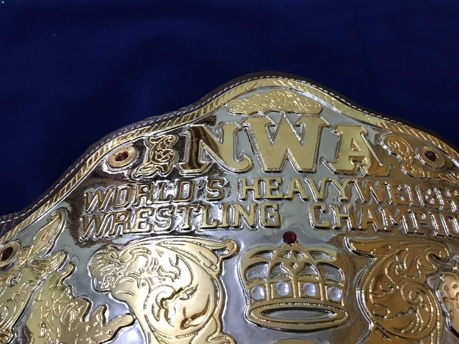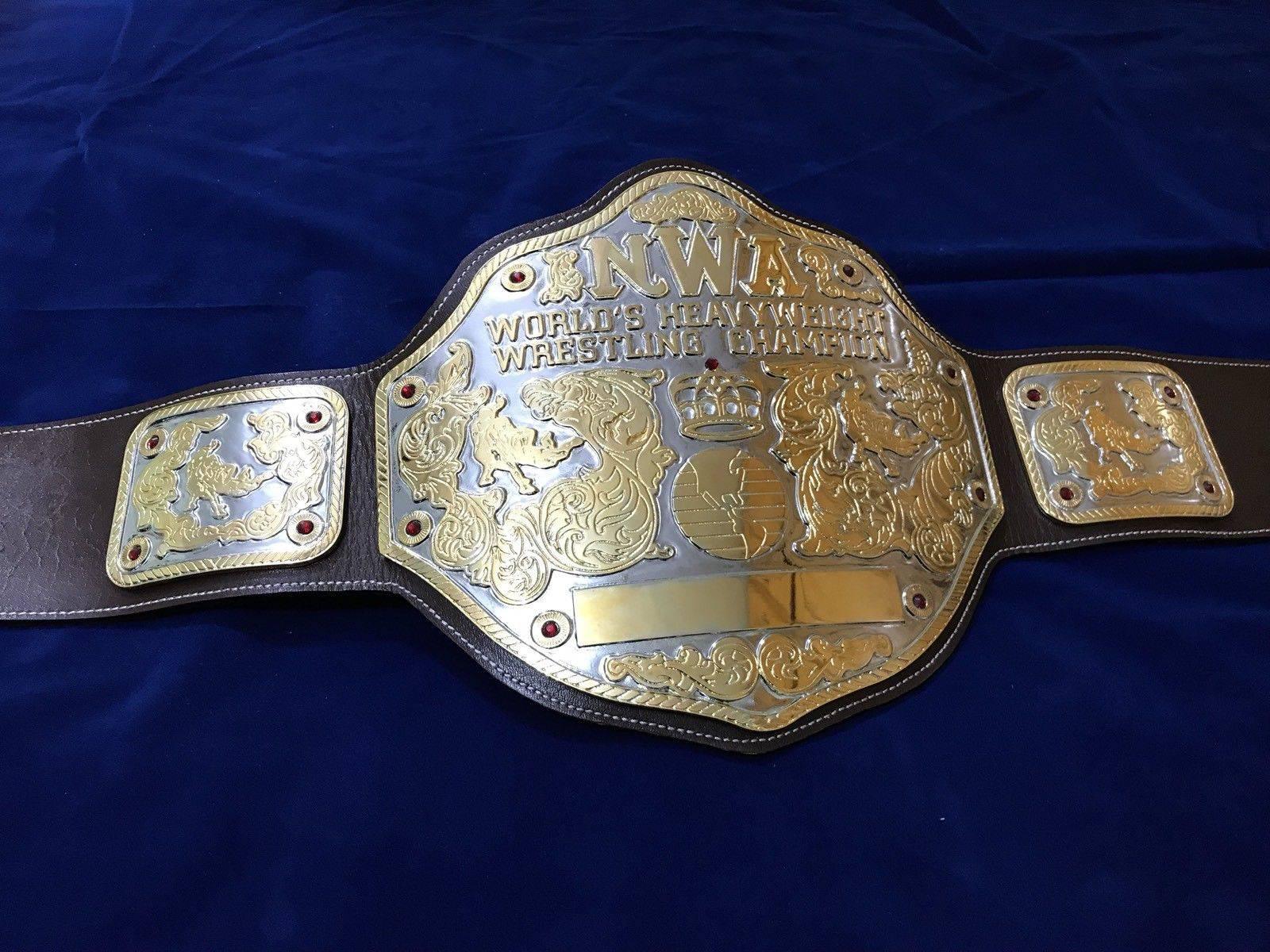 The NWA BIG GOLD 24K GOLD Zinc Championship Belt is available at Zees Belts and makes a great statement piece of any champion's collection.