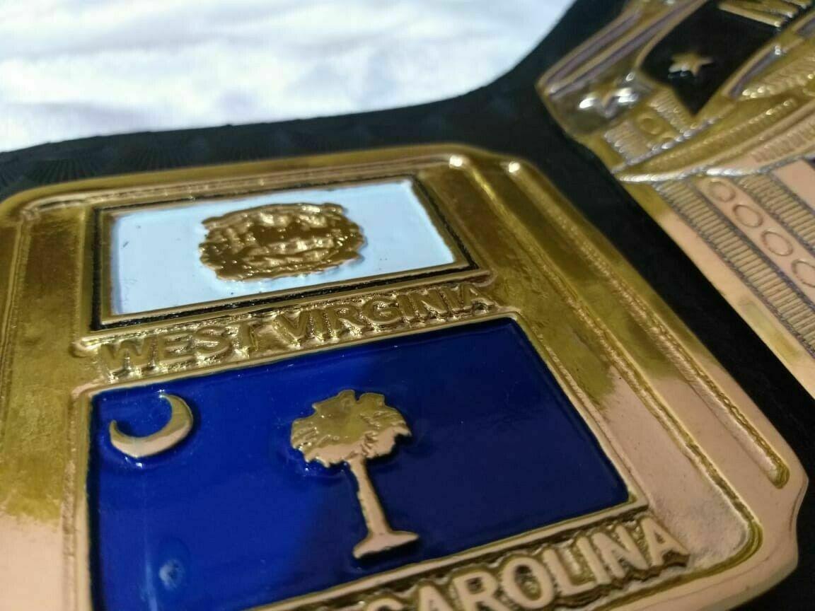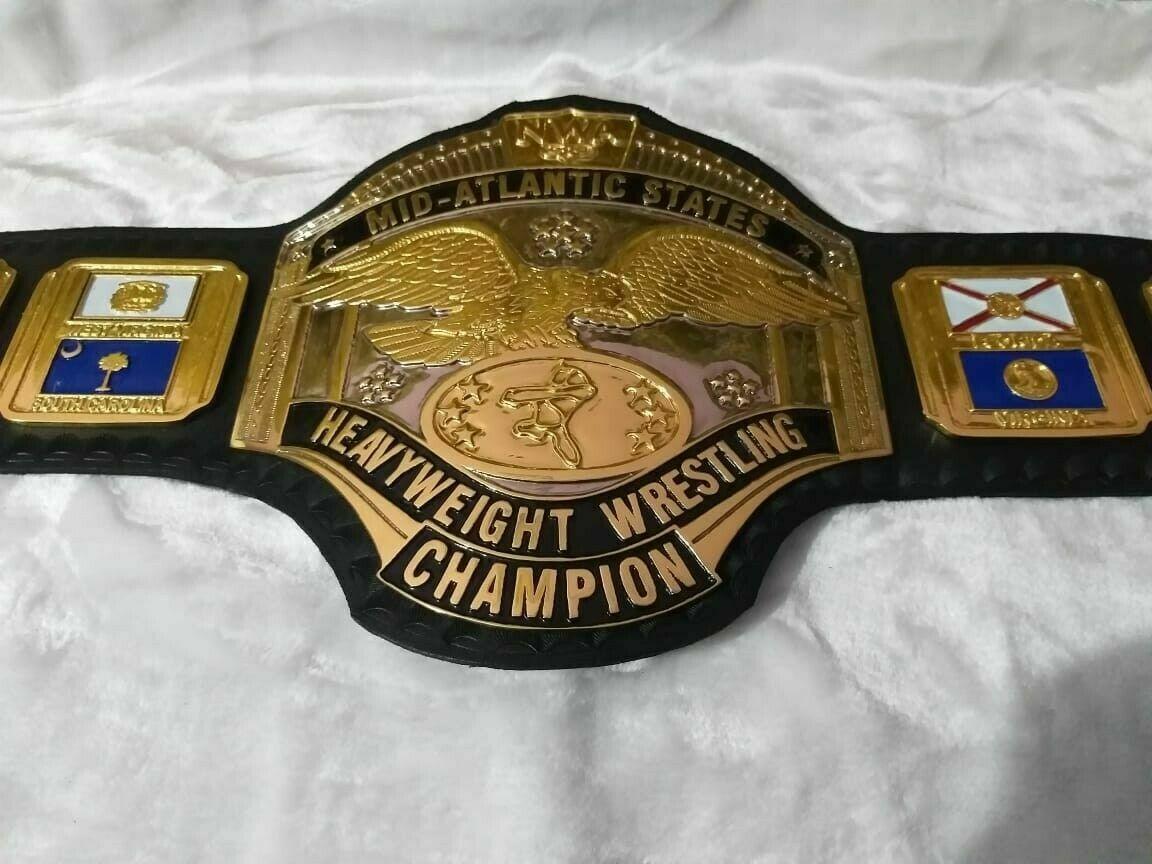 Jim Crocket promoted NWA Mid-Atlantic States Championship Belt. NWA Mid-Atlantic States Championship was introduced as a replacement for NWA Eastern States Heavyweight Championship in 1973. Jerry Brisco was the first wrestler to hold the NWA Mid-Atlantic Heavyweight Championship title. This beast is made with Zinc metal by skilled craftsmen at Zees Belts. NWA MID ATLANTIC STATES CHAMPIONSHIP Belt is made from Real Cowhide leather. NWA MID-ATLANTIC STATES Zinc Championship Belt When you hold this belt, you will feel like the NWA MID ATLANTIC Champion. So what are you waiting for? Are you a champion? This Belt will make your dream come true.