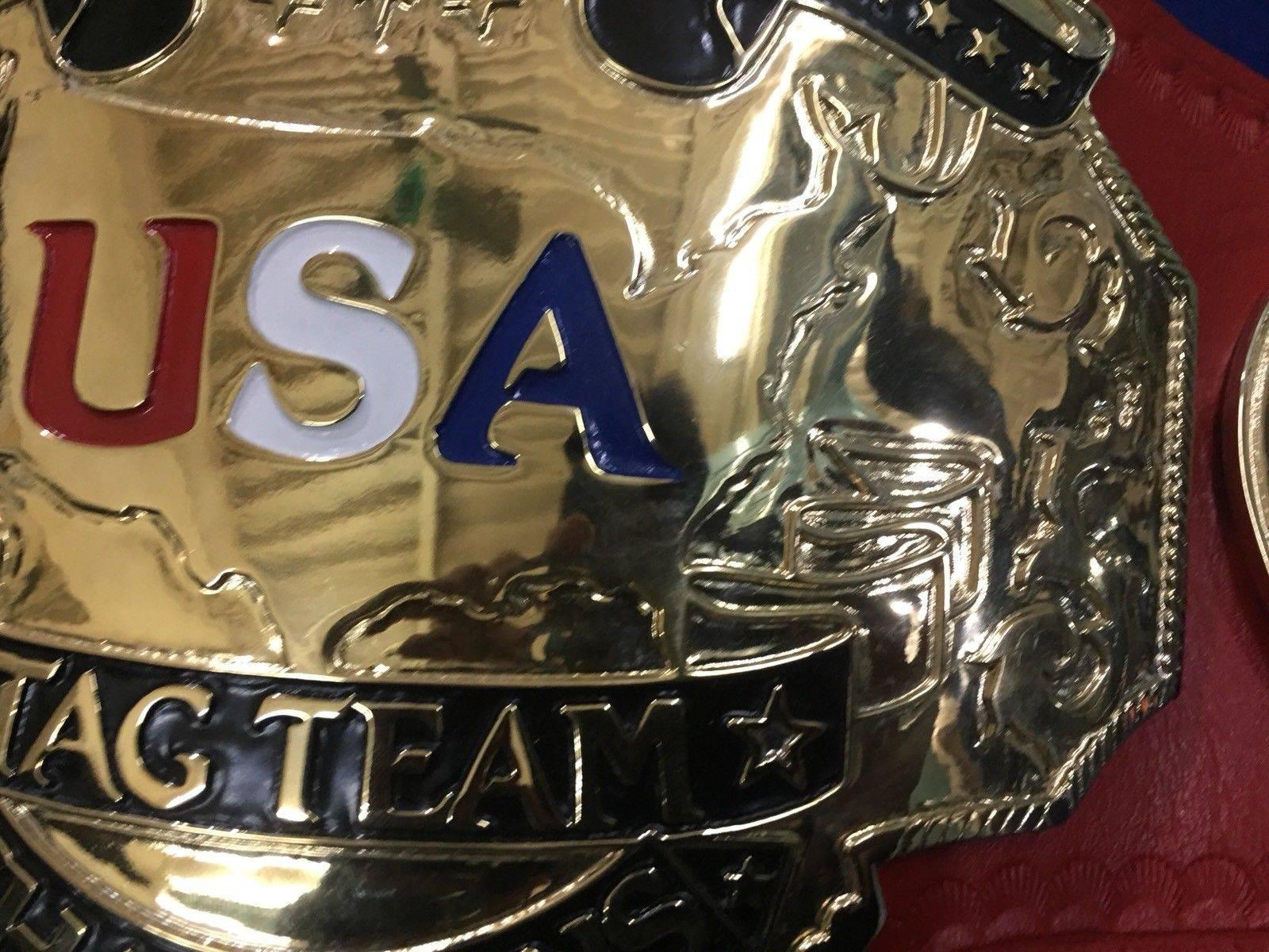 Championship belt is a piece of art. This belt is made with Zinc metal. 100% pure 24K Gold plating is done on the NWA United States Tag Team 24K Gold Zinc Championship Belt plates. Genuine Cowhide leather is used to make the straps of this championship belt. This belt can fit waist sizes up to 46 inches. The NWA United States Tag Team Championship Belt is available with laced and plain straps, depending on the customer's choice. Customization can be done on the belt.