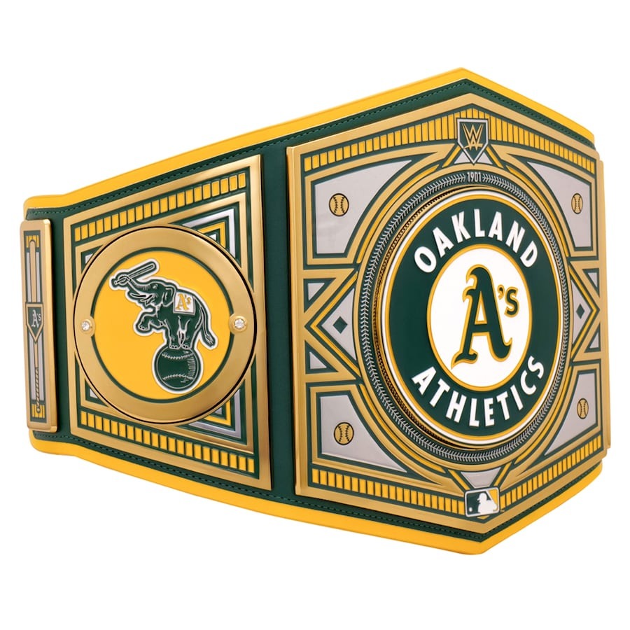 Commemorate the Oakland Athletics' storied legacy and illustrious MLB championship victories with this prestigious collectible. Meticulously crafted, this championship belt showcases the iconic Athletics logo, team colors, and intricate designs chronicling their on-field dominance. Constructed with premium materials, this belt embodies the Athletics' unwavering spirit and unwavering commitment to excellence. A must-have for any Athletics fan or discerning collector, this belt transcends Oakland Athletics MLB Championship Belt mere accessory; it is a symbol of pride and a timeless tribute to the team's enduring legacy. Claim yours today and proudly display your unwavering Athletics devotion.