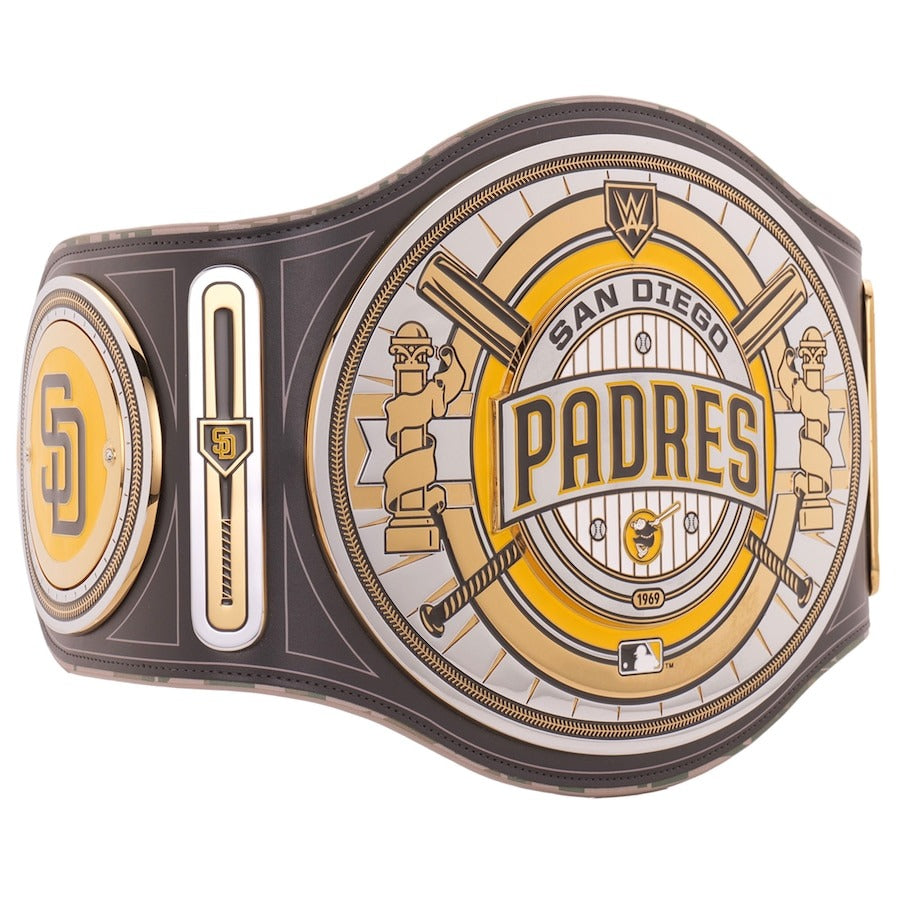 Celebrate the San Diego Padres' dynamic legacy and memorable MLB achievements with this distinguished collectible. Expertly crafted, this championship belt showcases the iconic Padres logo, team colors, and intricate designs chronicling their on-field triumphs. Constructed with premium San Diego Padres MLB Championship Belt materials, this belt embodies the Padres' vibrant energy and unwavering commitment to excellence. A must-have for any Padres fan or discerning collector, this belt transcends mere accessory; it is a symbol of unwavering loyalty and a timeless tribute to the team's storied history. Claim yours today and proudly display your unwavering Padres devotion.