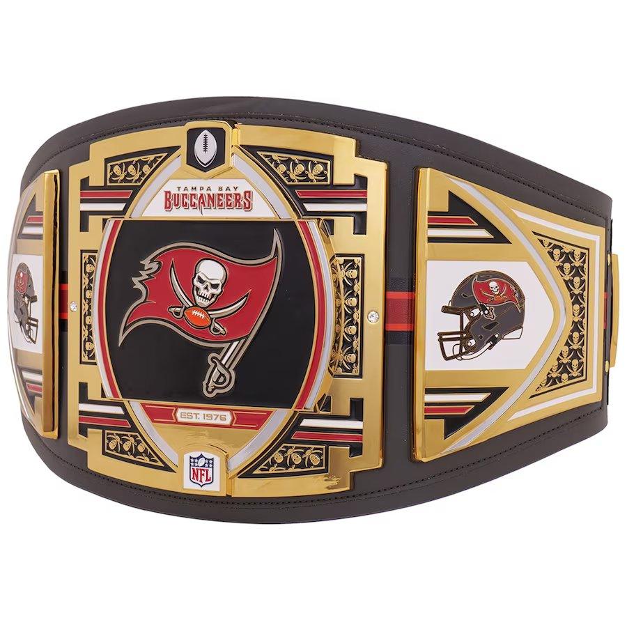 The Tampa Bay Buccaneers Championship Belt is a treasure trove of victory, a testament to the Buccaneers' relentless pursuit of excellence. Crafted with exquisite attention to detail, it encapsulates the essence of a franchise that has risen to the pinnacle of the NFL. The centerpiece proudly displays the iconic Buccaneers logo, set against a backdrop of fierce red and bold pewter, reminiscent of the electrifying atmosphere of Raymond James Stadium on game day. This belt is more than just an accessory; it's a symbol of the unbreakable bond between the team and its passionate fanbase. The premium materials and adjustable leather strap ensure both durability and comfort, making it a cherished item for any Buccaneers enthusiast. This belt is an emotional journey, a celebration of every Super Bowl victory, every iconic play, and the enduring love for the Buccaneers. It's a tangible reminder of the history, the glory, and the passion that are synonymous with Tampa Bay Buccaneers football.