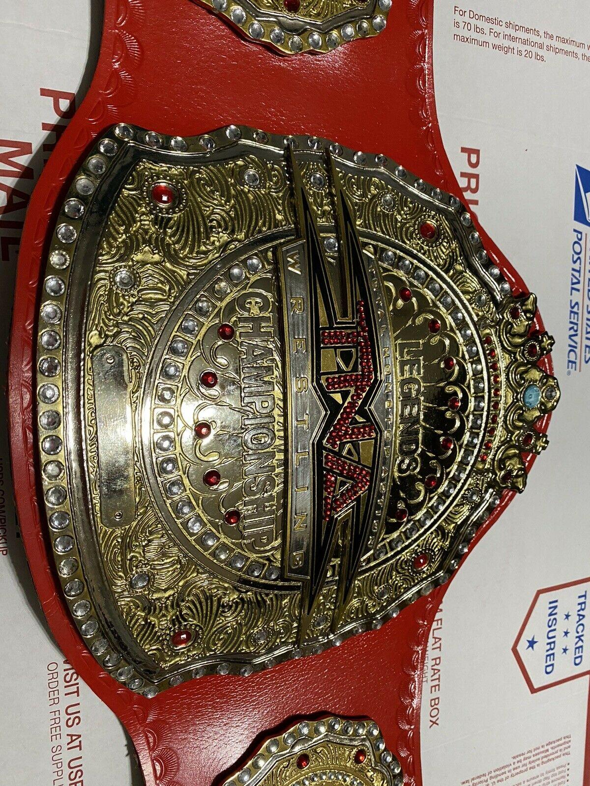 The TNA Television Championship was an expert wrestling championship claimed by the advancement of Total Nonstop Action Wrestling. It was presented on the October 23, 2008, episode of TNA's television program TNA Impact as the TNA Legends Championship. This Championship Belt is made with Zinc metal plates. High-quality TNA LEGENDS Zinc Championship Belt paintwork is done on the plate. The straps are made with real cowhide leather. We can customize this championship belt to customer demand. Are you a fan of the TNA Legends Championship? If yes, So What are you waiting for? Order your TNA Legends Championship bet now from Zees Belts.