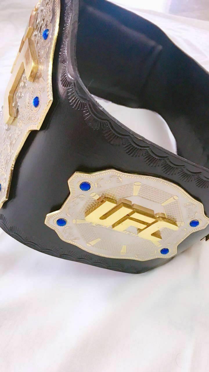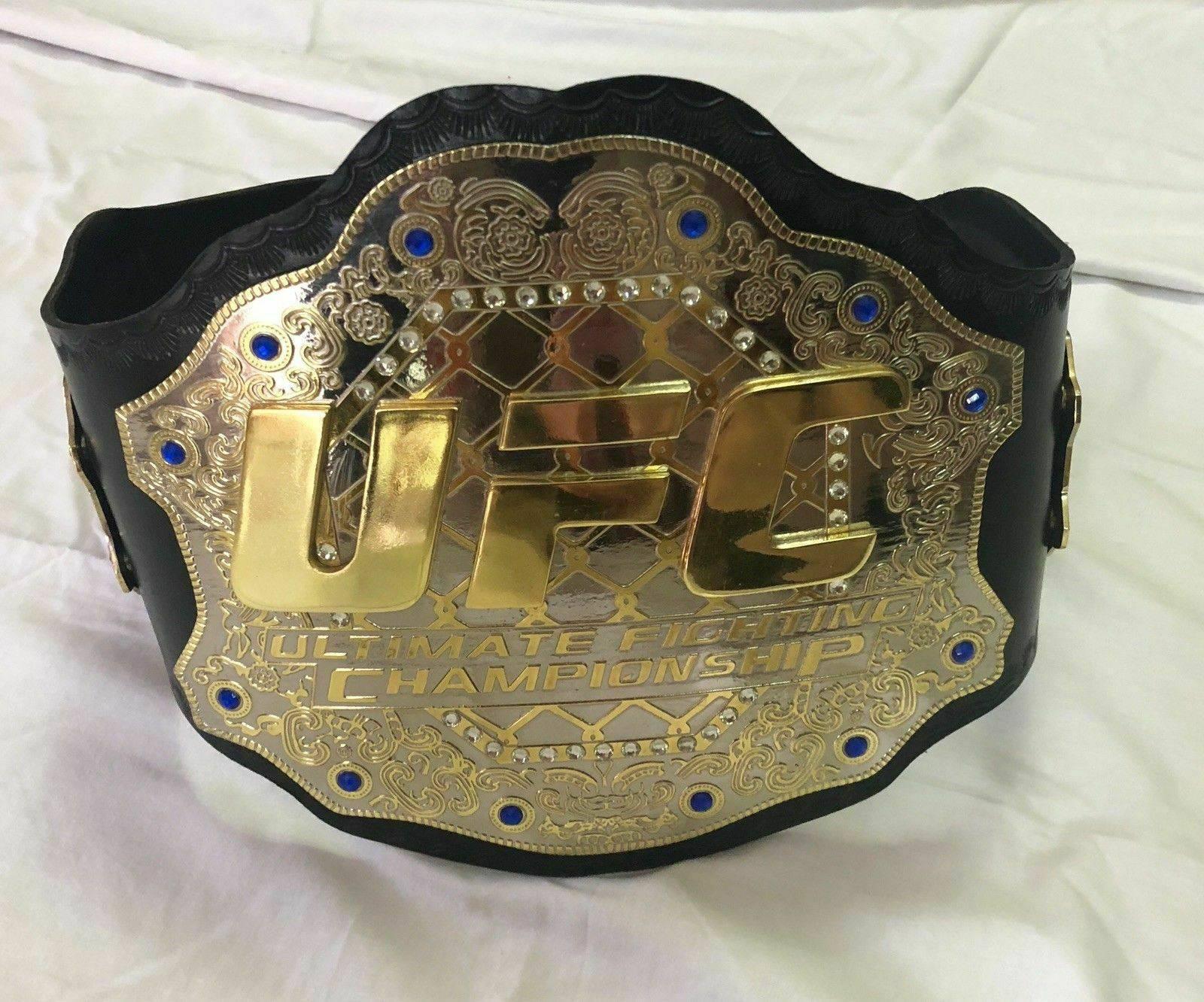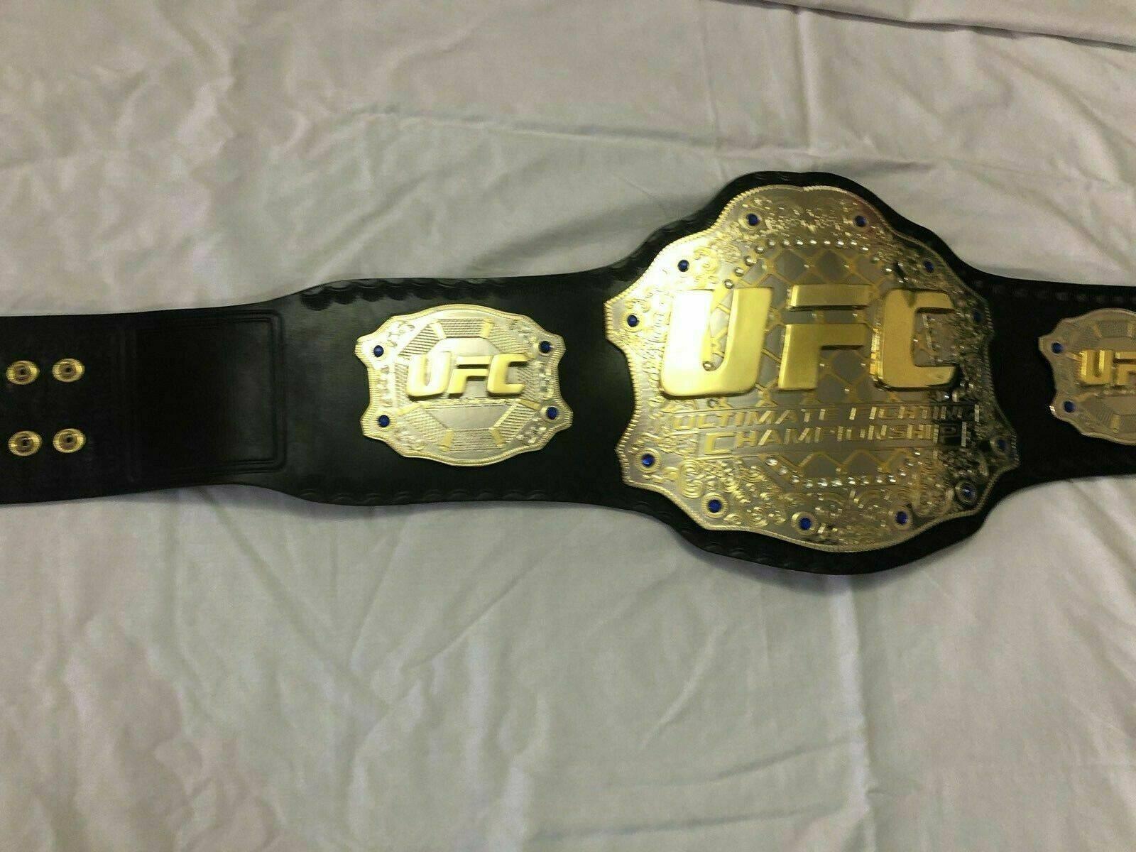 Ultimate Fighting Championship (UFC) is a promotion company based in Las Vegas. Nevada. UFC promotes mixed martial arts. It was founded in 1993 as Mixed Martial Arts (MMA). This UFC Championship Belt is made from double-stacked brass plates. High-quality gold plating is done. The straps of the UFC Championship belt are made from real cowhide leather. This Belt can fit waist sizes up to 46 inches. You can choose straps of your own choice, laced or plain. Customization can be done.