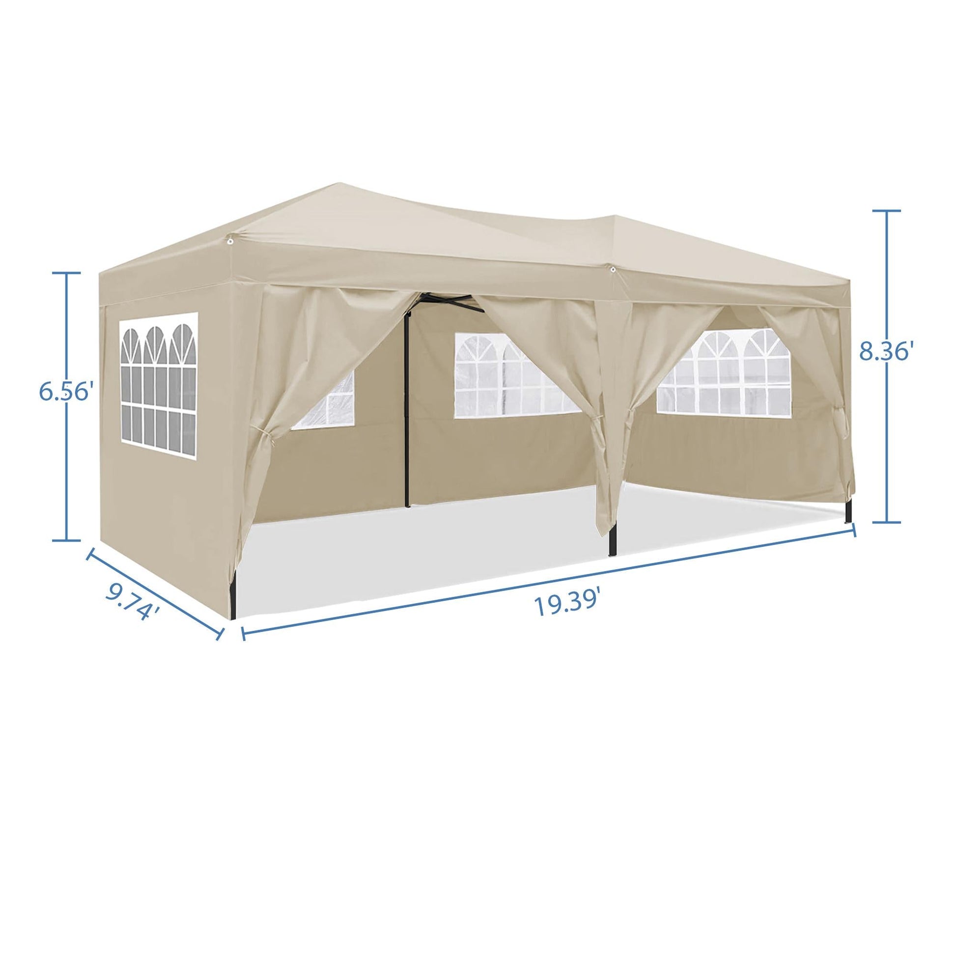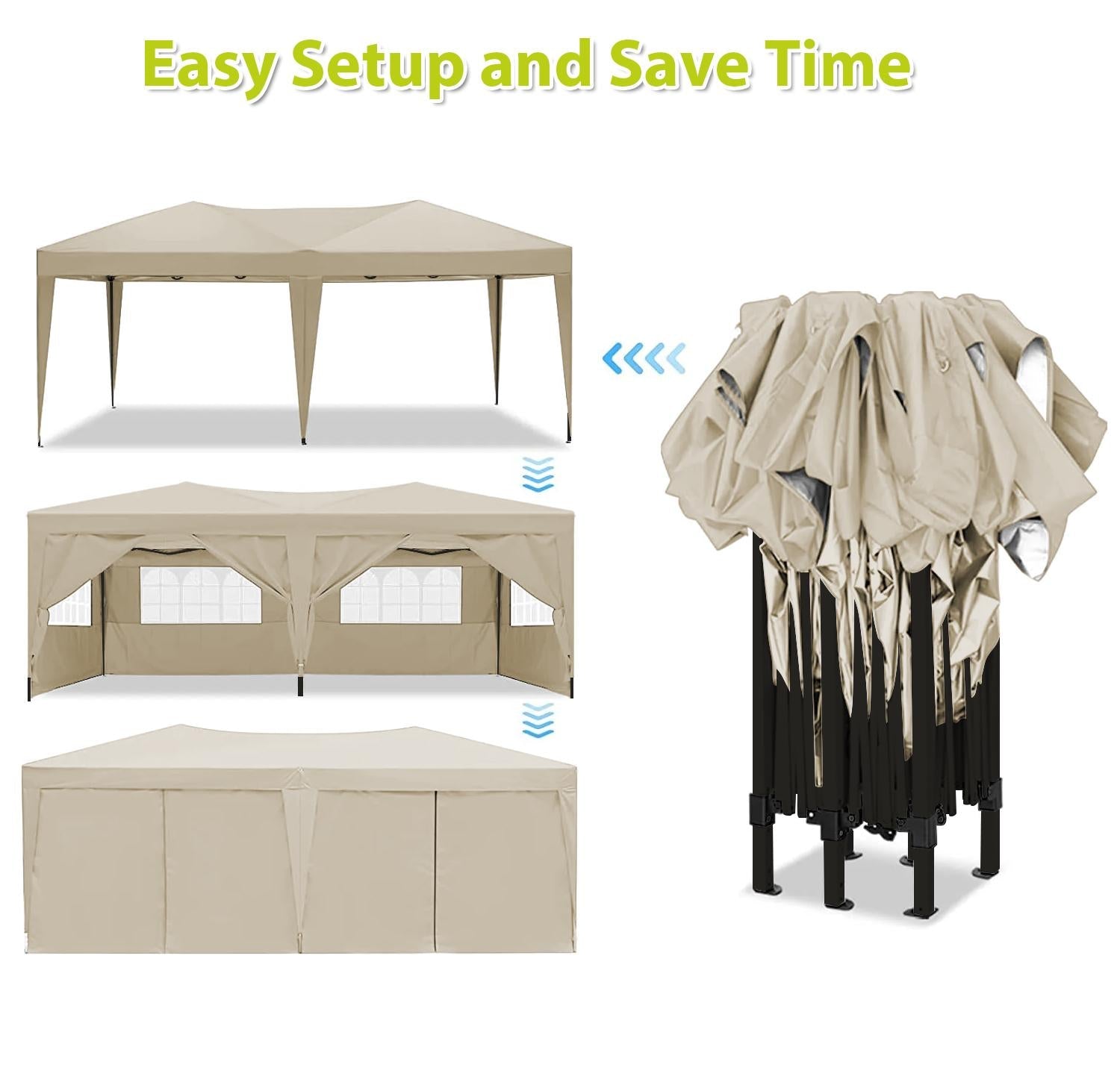 10'x20' EZ Pop Up Canopy Outdoor Portable Party Folding Tent with 6 Removable Side Walls + Carry Bag + 6 Weight Bags