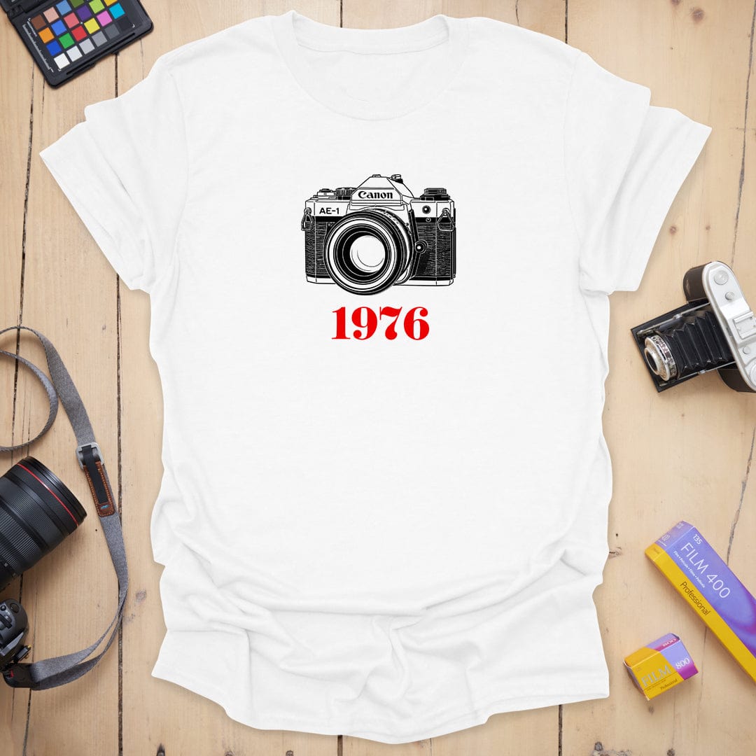 A true classic—just like your photography! 📸 The 1976 T-Shirt pays tribute to the legendary Canon AE-1, the camera that changed the game for photographers everywhere. Whether you're a vintage camera lover or just appreciate timeless design, this tee is a must-have. Shoot in style and rep the golden era of film! 🎞️✨