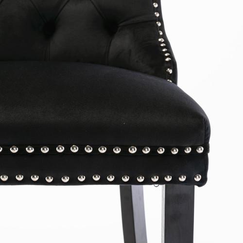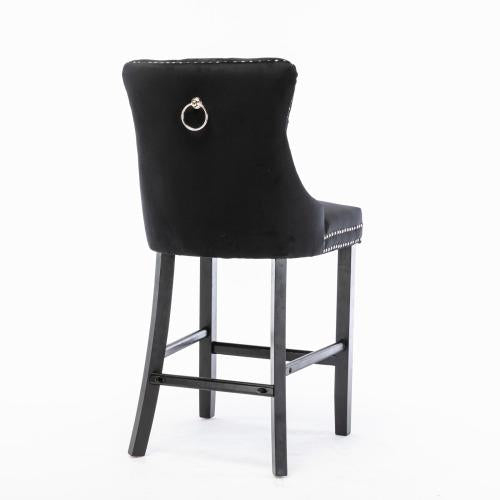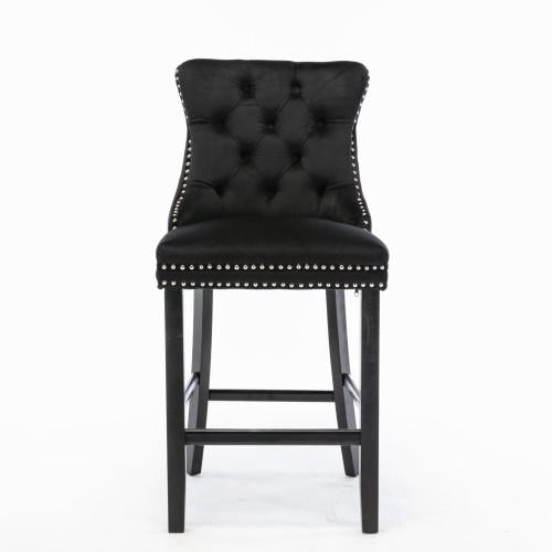 2 Piece Velvet Bar Stool With Button Tufted Trim And Wooden Legs