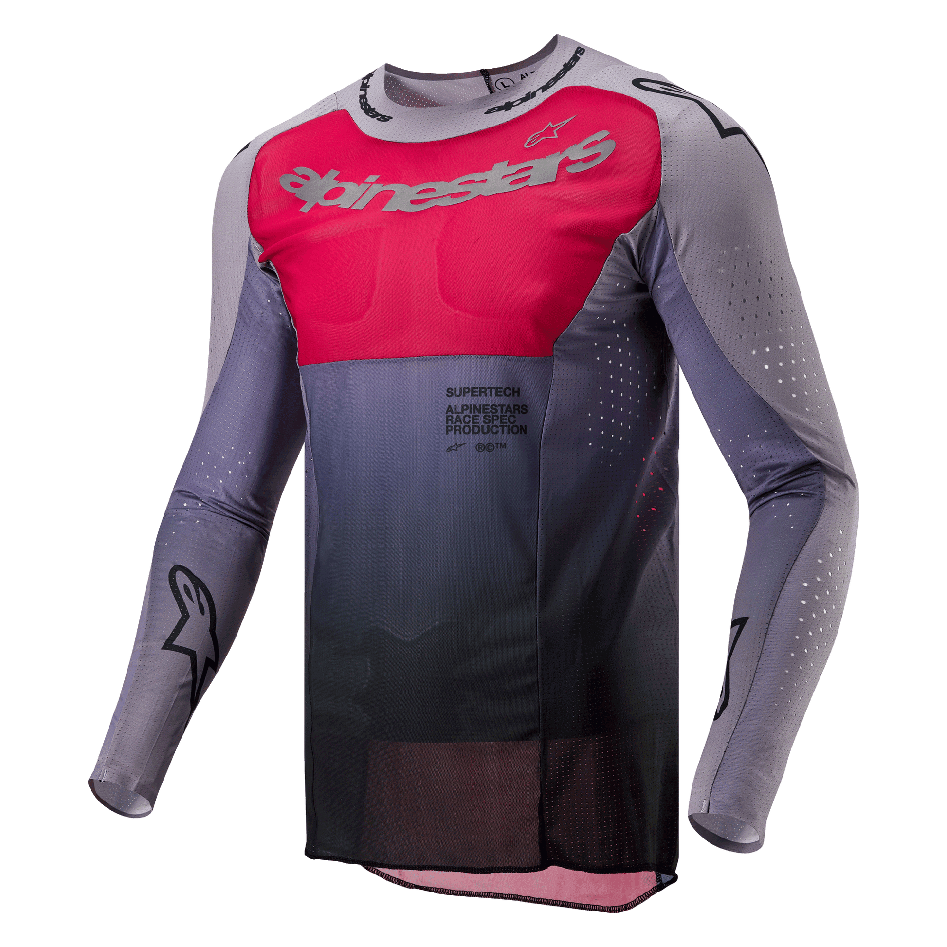 Supertech is Alpinestars innovative Pro Level Motocross apparel line, designed for superior dirt riding performance. Supertech gear offers a Factory Rider design, featuring an extremely lightweight, almost compression style fit. When it comes to the jersey and pants, and their improved ergonomic cuts designed to enhance body movement on the track, the Supertech gear fits like a second skin. With an engineered design for an athletic race fit, a chassis consisting entirely of advanced stretch mesh and an ultra-lightweight construction, the Supertech Jersey is Alpinestars lightest ever MX jersey. Featuring a host of SX and MXGP race-proven technologies, the Supertech Jersey delivers optimum levels of flexibility, freedom of movement, ventilation, durability, and comfort.