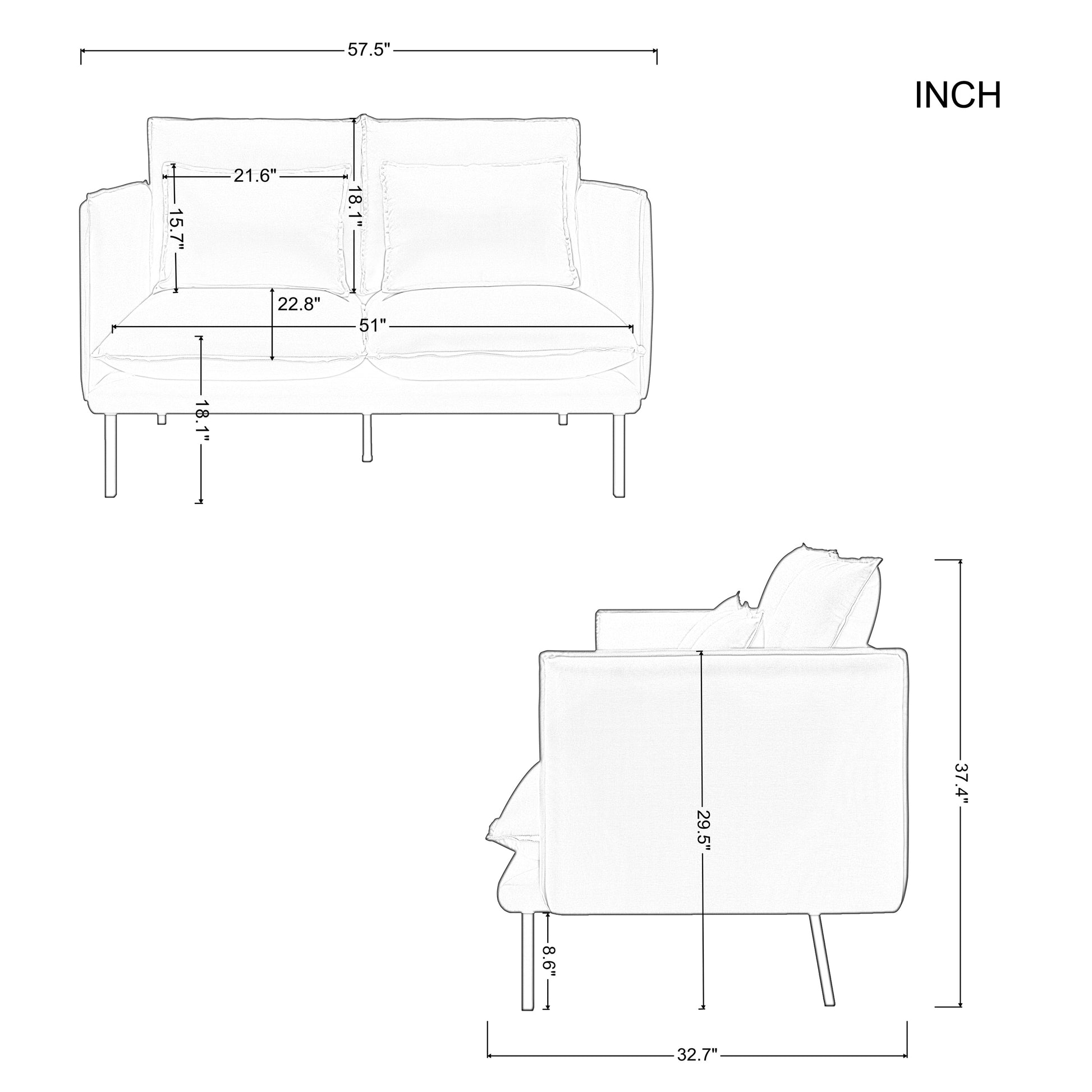 Product Overview Description / Features - 2pcs Living Room Sofa set, a Sofa and a loveseat, upholstered contemporary design, offers a good place for your family, friends to rest. -Seat cushions and back cushions wrapped with wide edge trim, cushion covers are removable and washable; -Cushion back; Comfortable seating with pocket spring inside; - Metal legs, and 2 pillows included; - Compressed back cushion & seat cushion. Please rebound 72 hours after opening the package for your perfect use. Caution*** Please do not open the compressed packaging until your sofa frame is completely assembled, otherwise it can’t be repacked in original packing way to return. *** Please review the product dimension and check if it’s suitable for your living room *** It might be have color difference due to photograph lighting, or computer monitor displayed. Product Details Weights & Dimensions Overall size - Sofa 78.5” x32.7”x 37.4”H - Loveseat 57.5” x32.7”x 37.4”H Back Cushion 18.1”H Seat Height 18.1” Arm Height 29.5” Leg Height 8.6” Product Weight - Sofa 96.8 LBS Product Weight - Loveseat 75.46 LBS Carton size & Gross Weight - Sofa 74.8” x 29.53” x 8.7” 105.82 LBS Carton size & Gross Weight - Loveseat 55.12” x 29.53” x 9.4” 83.55 LBS Specifications Product Type Sofa & Loveseat Design Standard Seating Capacity 2 Upholstery Material Polyester Upholstery Colour Beige, Grey, Navy Blue, Yellow Seat Fill Material Foam + Pocket Spring Back Fill Material Synthetic Fiber Frame Material Metal + Solid wood + Manufactured Wood Wood Species Eucalyptus Leg Material Metal Leg Color Black Back Type Cushion back Arm Type Square arm Toss Pillows 2 Back & Seat Removable Reversible No Storage No Joinery Corner-block-reinforced Main Wood Joinery Method Basic Butt Kiln-Dried Wood Yes Weight Capacity 300 LBS each seat Intended Use Residential Use Warranty One Year Country of Origin China Shipping Courier Minimum Door width 10” Product Care Wipe clean with dry cloth, do not use strong liquid cleaners Assembly Assembly Required Yes Level of Assembly Partial Assembly Assembly Time 30 Minutes Adult Assembly Required Yes Suggested Number of People 2 Additional Tools Required All tools included