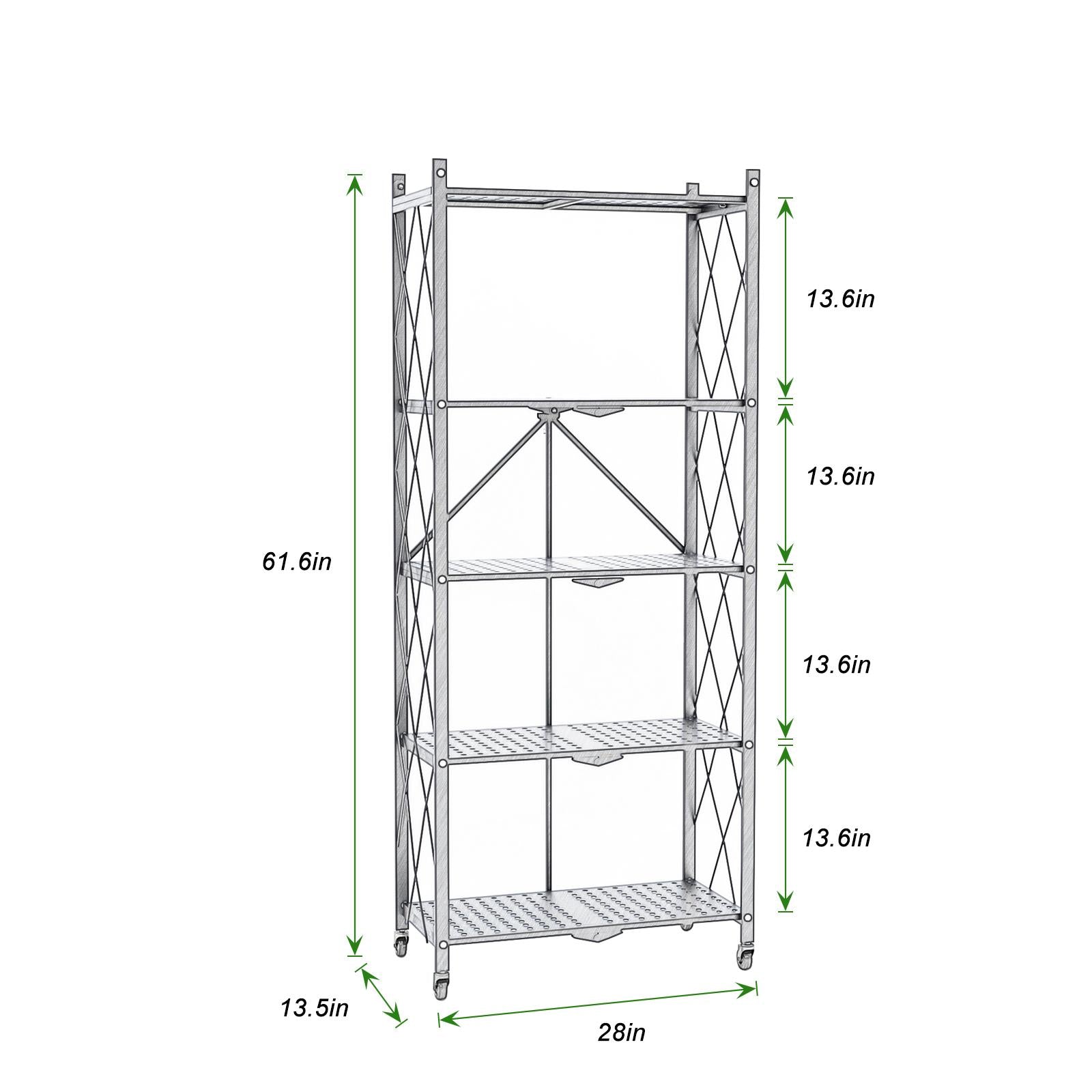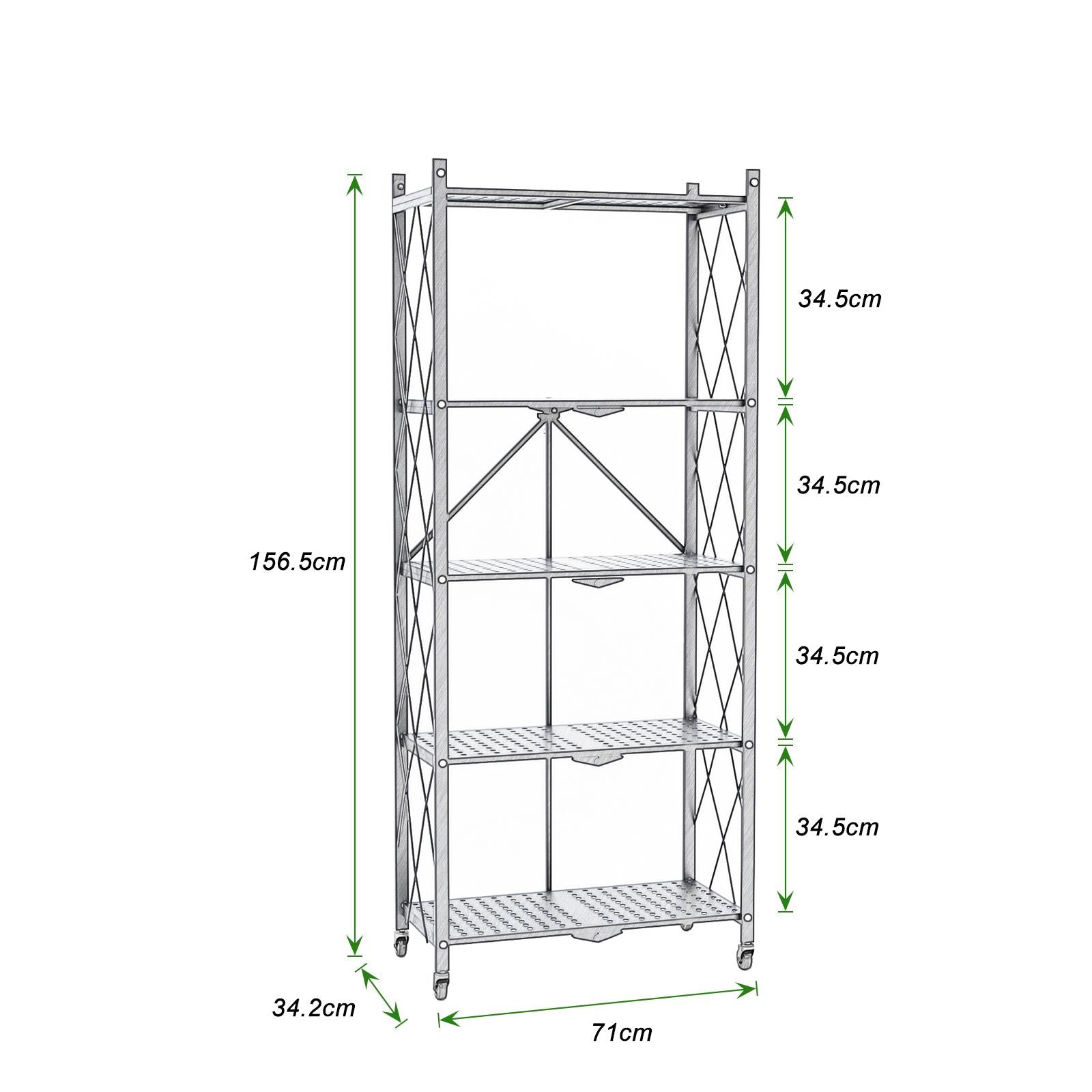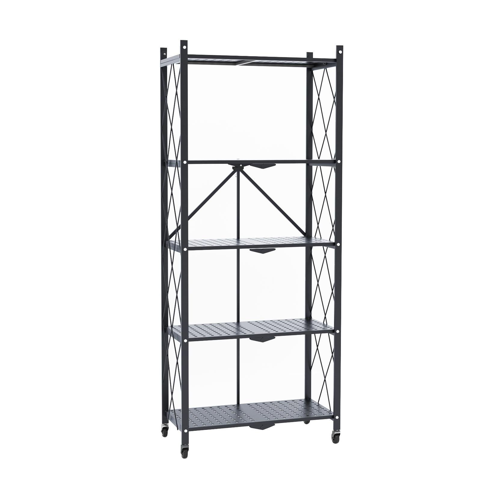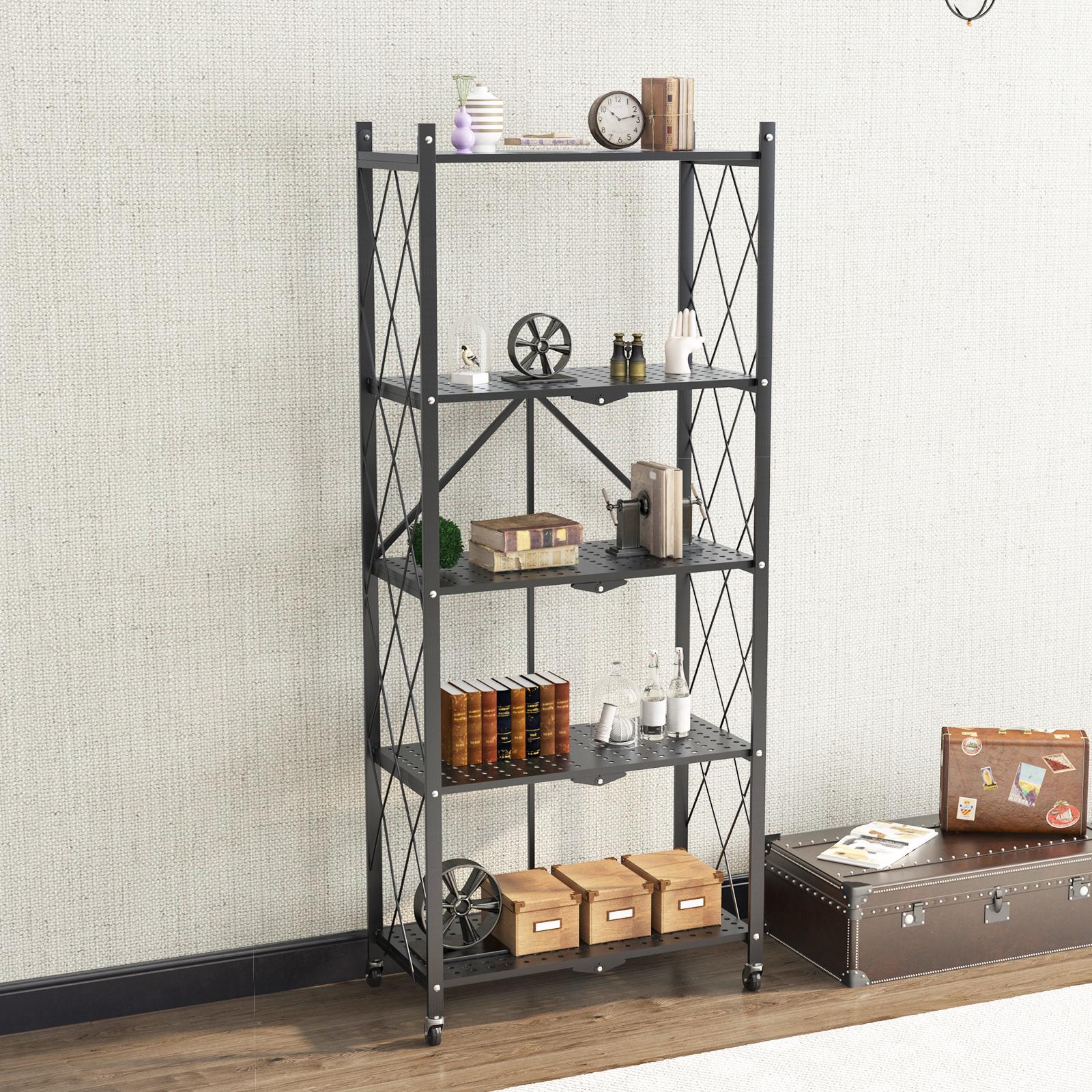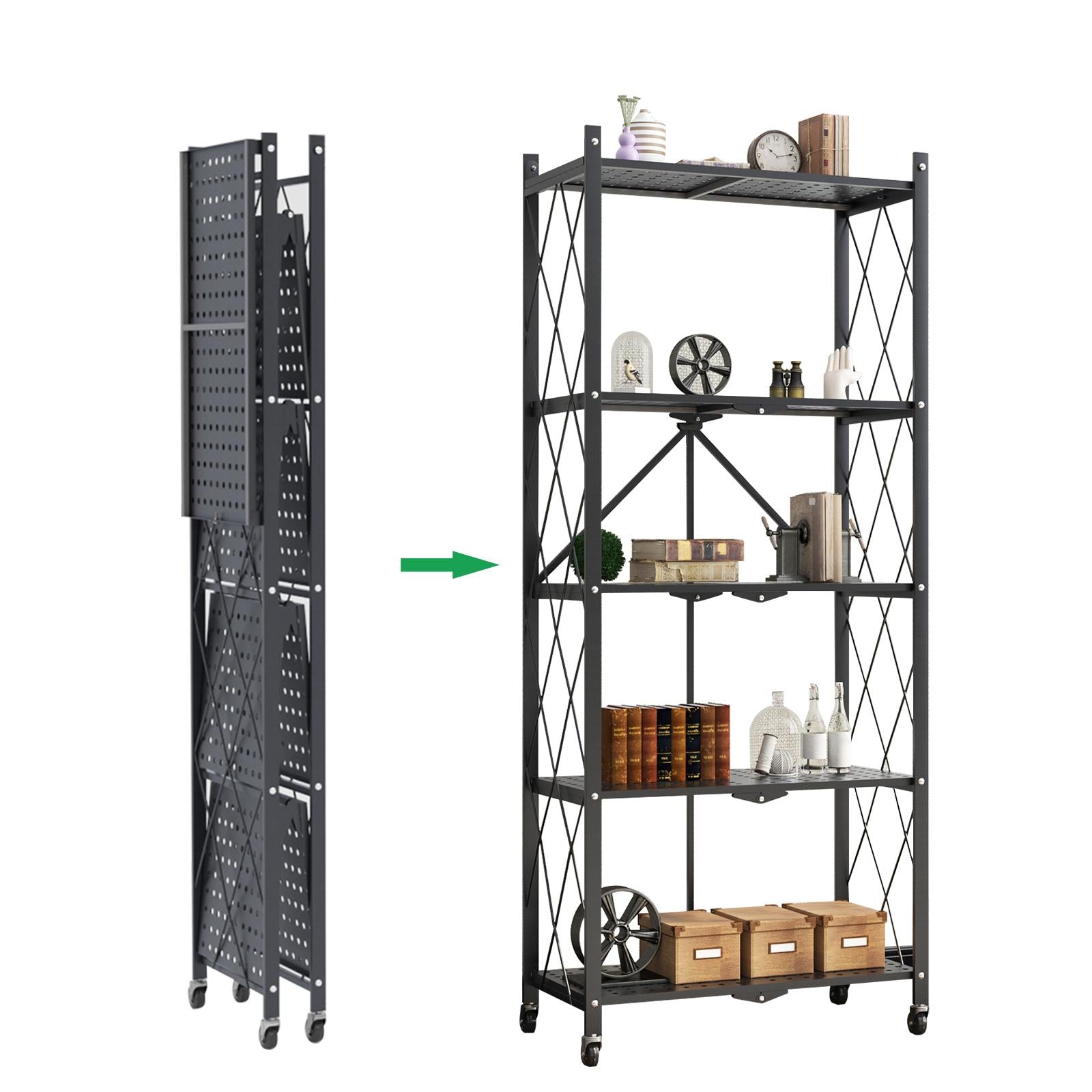 3/4/5-Tier Foldable Shelf, Heavy Duty Metal Rack Storage Shelving Units with Wheels, for Home Office Kitchen Garage,