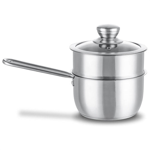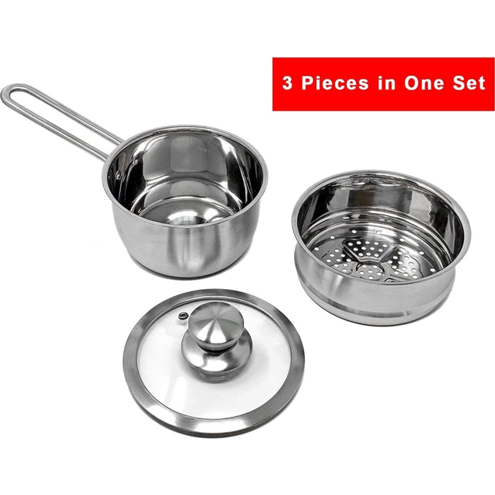 3 Pcs Stainless Steel 2QT 2-Tier Pasta Steamer Saucepan Set With Handle And Tempered Glass Lid