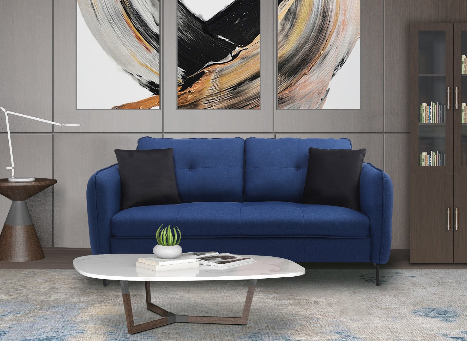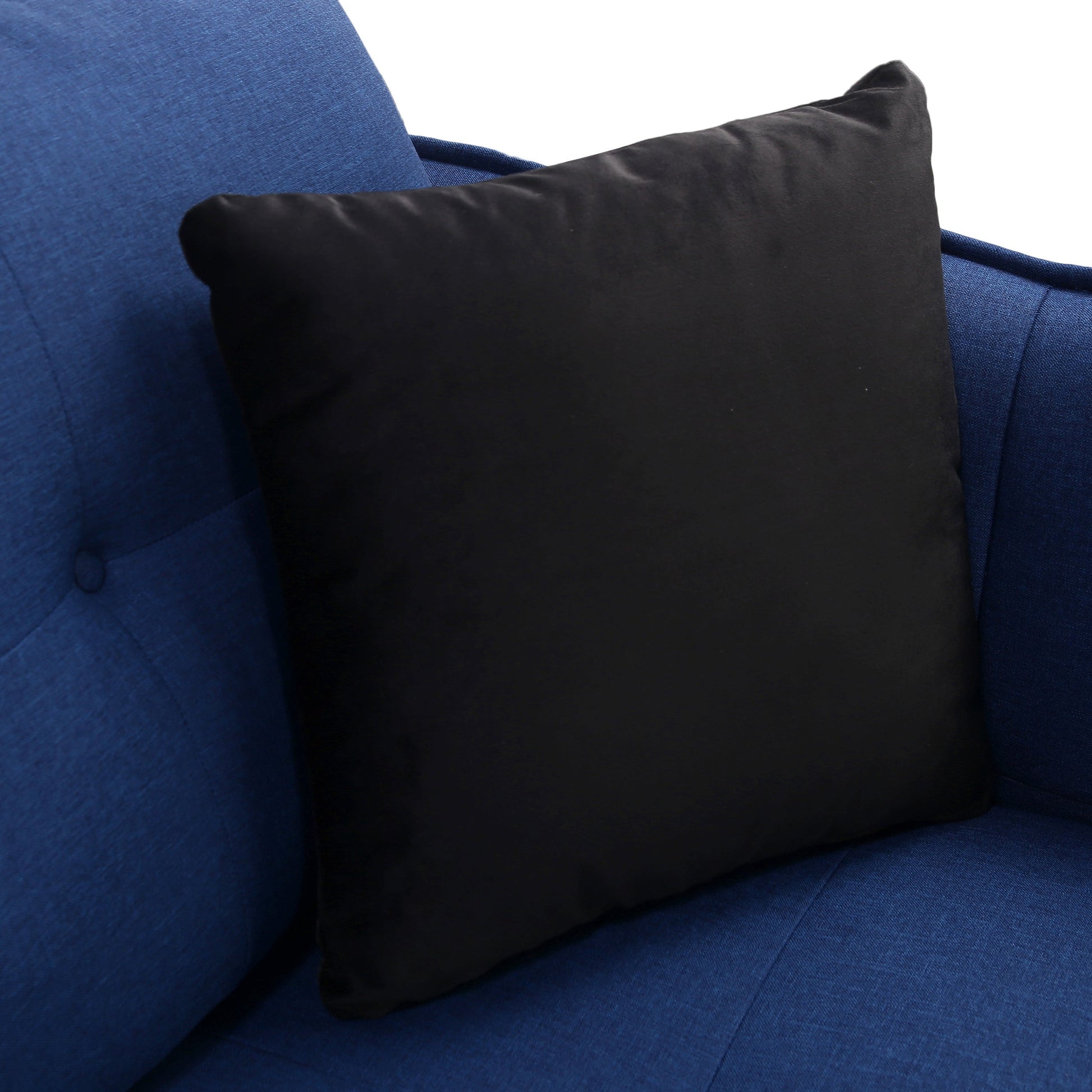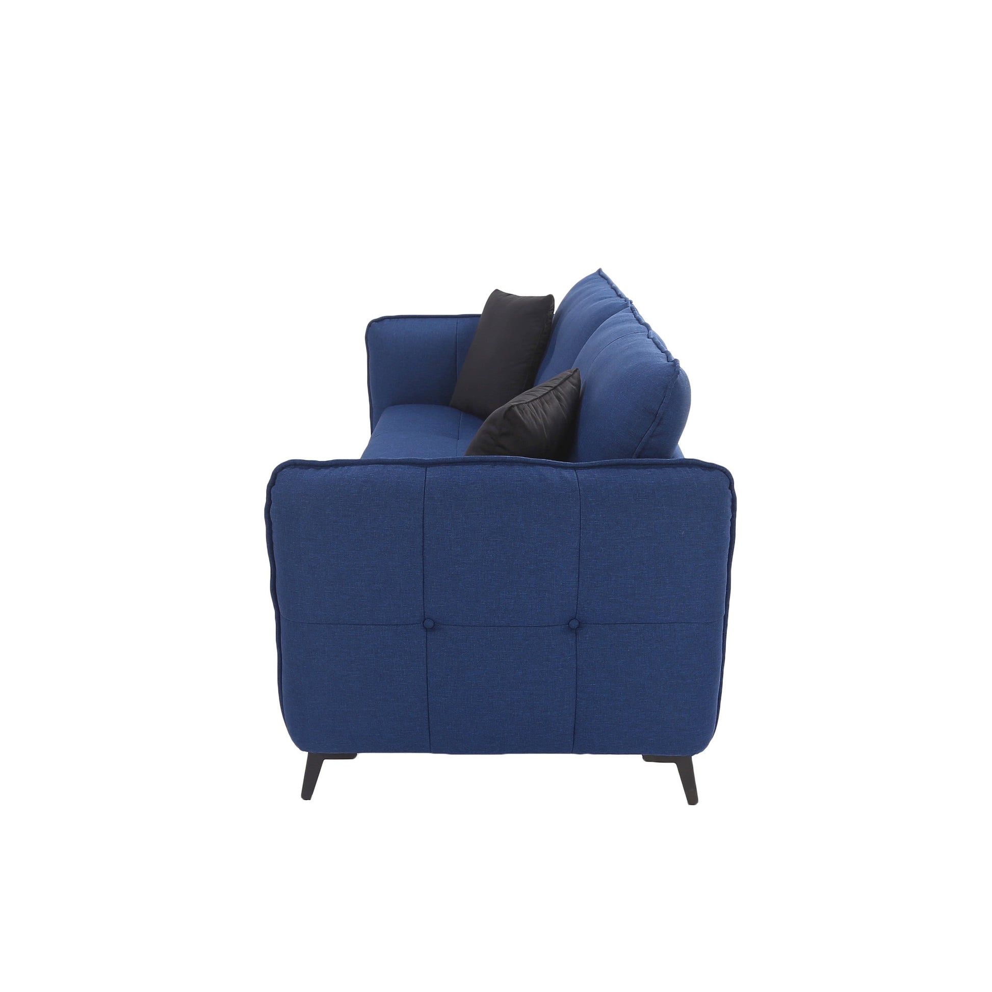 Product Overview Description / Features - Fine workmanship and button tufting with piping edge; -Seat cushions and back cushions are removable and washable; - 2 kind of fabric for choosing, polyester blend or 100% polyester; - Metal legs in black color; - Compressed back cushion & seat cushion. Please rebound 72 hours after opening the package for your perfect use. Caution*** Please do not open the compressed packaging until your sofa frame is completely assembled, otherwise it can’t be repacked in original packing way to return. *** Please review the product dimension and check if it’s suitable for your living room *** It might be have color difference due to photograph lighting, or computer monitor displayed. Product Details Weights & Dimensions Overall size -Sofa 75.1” x34.6”x 33”H Overall size -Loveseat Back Cushion 17.3”H Seat Height 18.1” Arm Height 27.9” Leg Height 5.9” Product Weight -Sofa 88.66 LBS Gross Weight -Sofa 101.41 LBS Carton size & Gross weight -Sofa 65.75” x 25.2” x 7.28”, 63.93LBS 35.04” x 23.23” x 14.17”, 37.48LBS Product Weight -Loveseat Gross Weight -Loveseat Carton size & Gross weight -Loveseat Specifications Product Type Design Sofa Orientation Standard Seating Capacity 3 Upholstery Material Upholstery Colour Grey (100% polyester), Navy blue (100% polyester) Dark Grey (Polyester Blend) Seat Fill Material Foam + Pocket Spring Back Fill Material Synthetic Fiber Frame Material Metal + Solid wood + Manufactured Wood Wood Species Eucalyptus Leg Material Metal Leg Color Black Back Type Cushion back Arm Type Square arm Toss Pillows 2 Back & Seat Removable Reversible No Storage No Joinery Corner-block-reinforced Main Wood Joinery Method Basic Butt Kiln-Dried Wood Yes Weight Capacity 300 LBS each seat Intended Use Residential Use Warranty One Year Country of Origin China Shipping Courier Minimum Door width 15” Product Care Wipe clean with dry cloth, do not use strong liquid cleaners Assembly Assembly Required Yes Level of Assembly Partial Assembly Assembly Time 30 Minutes Adult Assembly Required Yes Suggested Number of People 2 Additional Tools Required All tools included