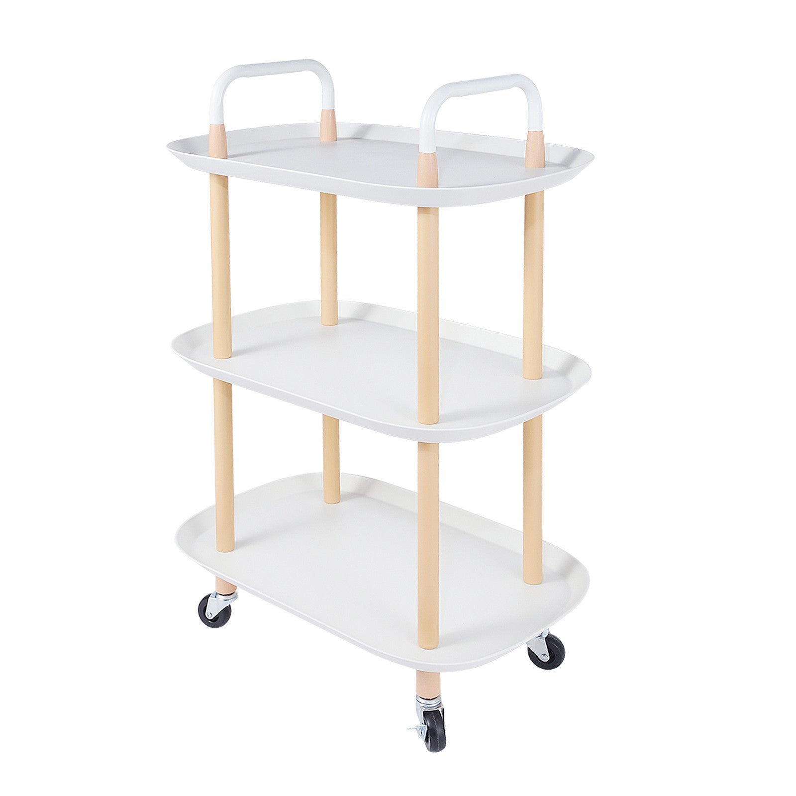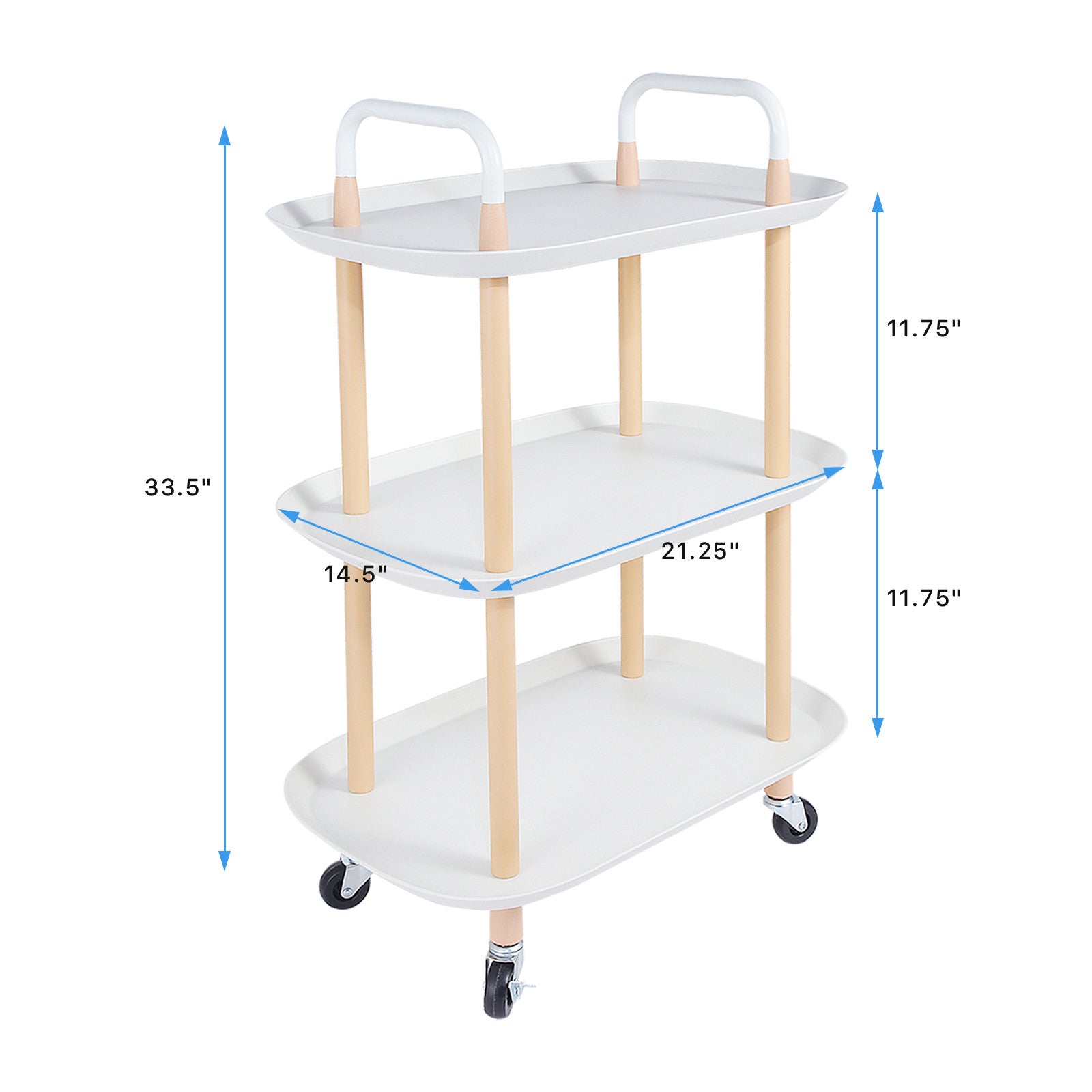 Metal and plastic,the trays are plastic and the pillars are iron 【Sturdy & Stable】The 3-tier mobile storage cart is made of high-quality steel frame , which is strong and durable, waterproof and wear-resistant . Each basket load capacity can reach up to 33 lbs. 【Saving Space】 3-Tier cart provide enough storage space for your daily life, optimize the space utilization, and make the messy room tidy. Cart Dimension : 33.5*14.5*21.25 inch . 【Movable & Convenient 】Utility rolling cart is equipped with 4 heavy duty and lockable casters with 360°rotation . It is easy to move or stay stable as needed. 【Easy Installation】3 Tier utility rolling cart comes with assembly tools , it only takes 5-10 mins to set it up. 【Classic Design】The classic color and design makes this storage cart better match the decoration style of your home or office.