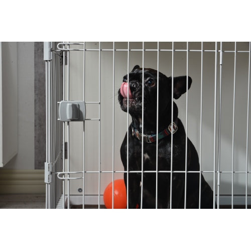 This Elegant dog crate with metal wire panels construction doubles as a side table, end table or nightstand as well as keeps the pet confined. The classic white color allow it to be a elegant decoration in house.