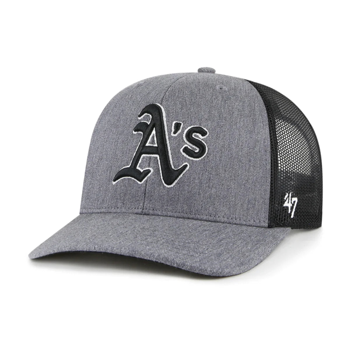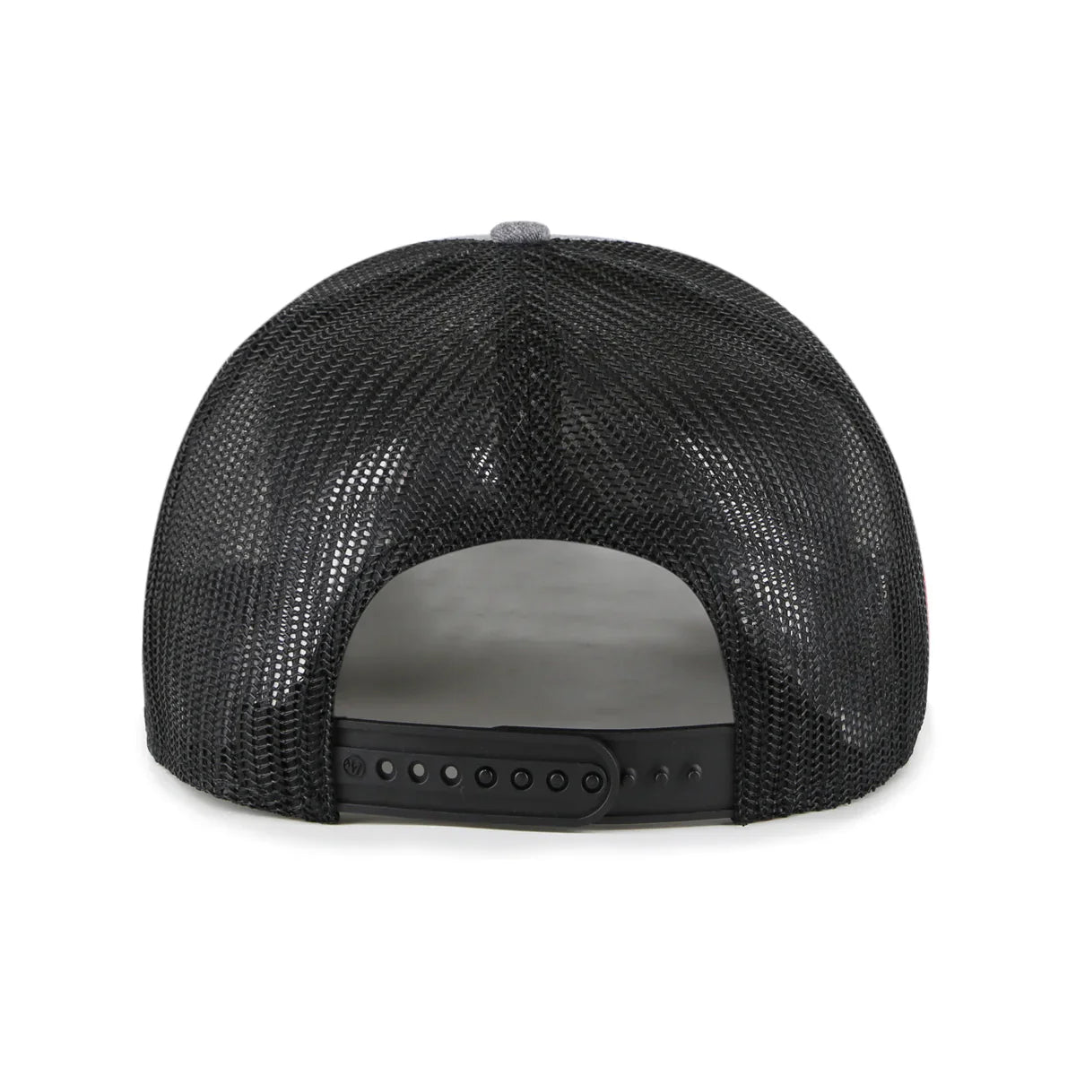 The '47 TRUCKER has a comfortable mid-crown, a curved visor, and an adjustable plastic snapback. The front has a raised embroidery logo. Made from garment washed cotton twill and mesh.