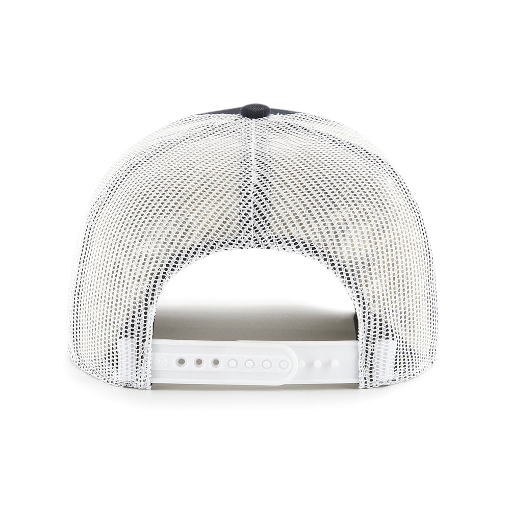 The '47 Trucker has a comfortable mid-crown, a curved visor, and an adjustable plastic snapback. The front has a raised embroidery logo. Made from garment washed cotton twill and hard mesh.