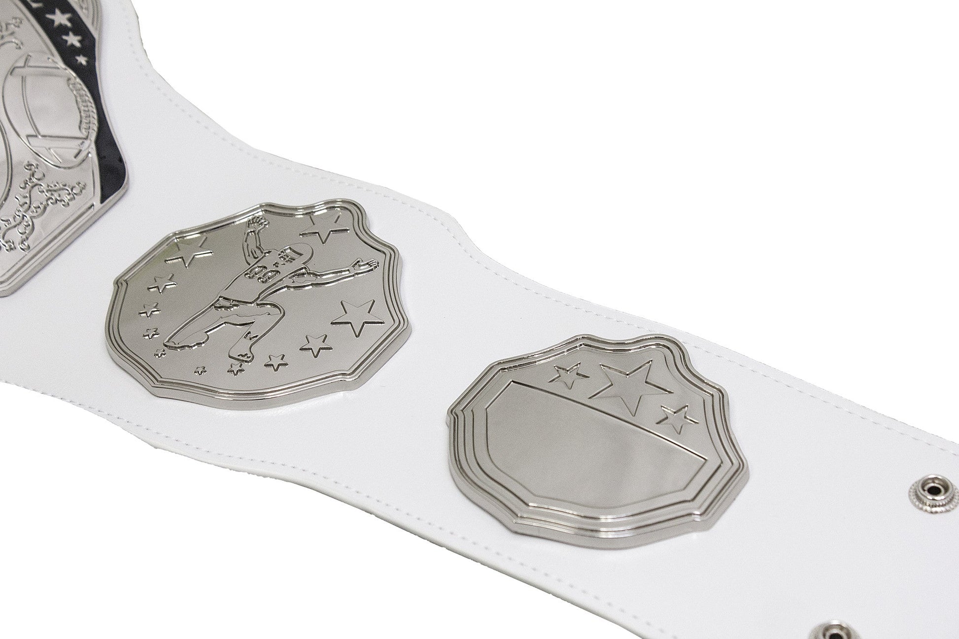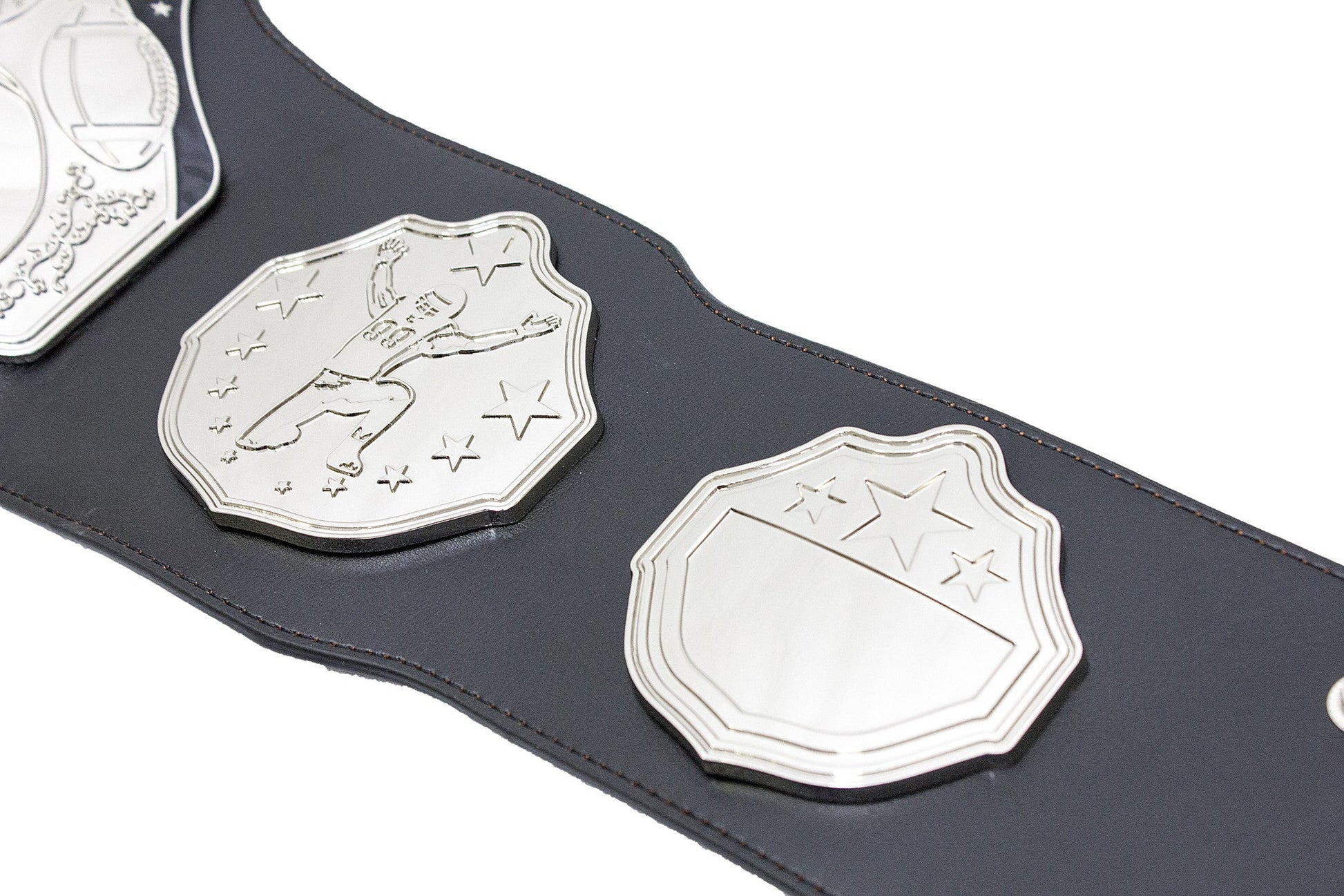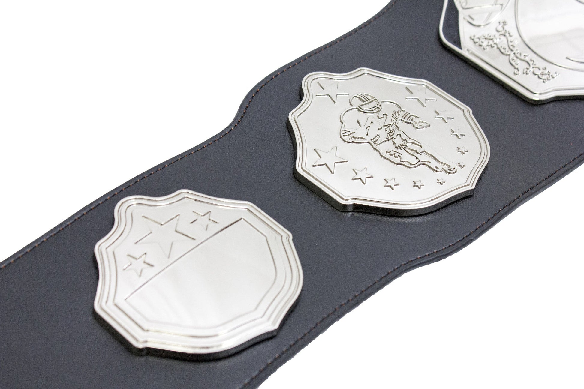 Box of 5 Spike style fantasy football belts. Comes out to $89 each and retails for $129-$149. This is our most popular fantasy football belt by far. End plates have room for engraving with rotary engraver or laser engraveable adhesives that you can custom fit. Choose black or white strap with gold or silver plates.