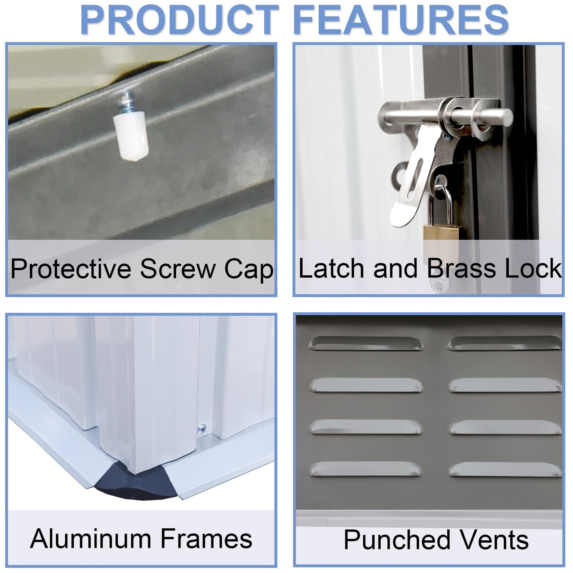 5 X 3 Ft Outdoor Storage Shed, Galvanized Metal Garden Shed With Lockable Doors, Tool Storage Shed