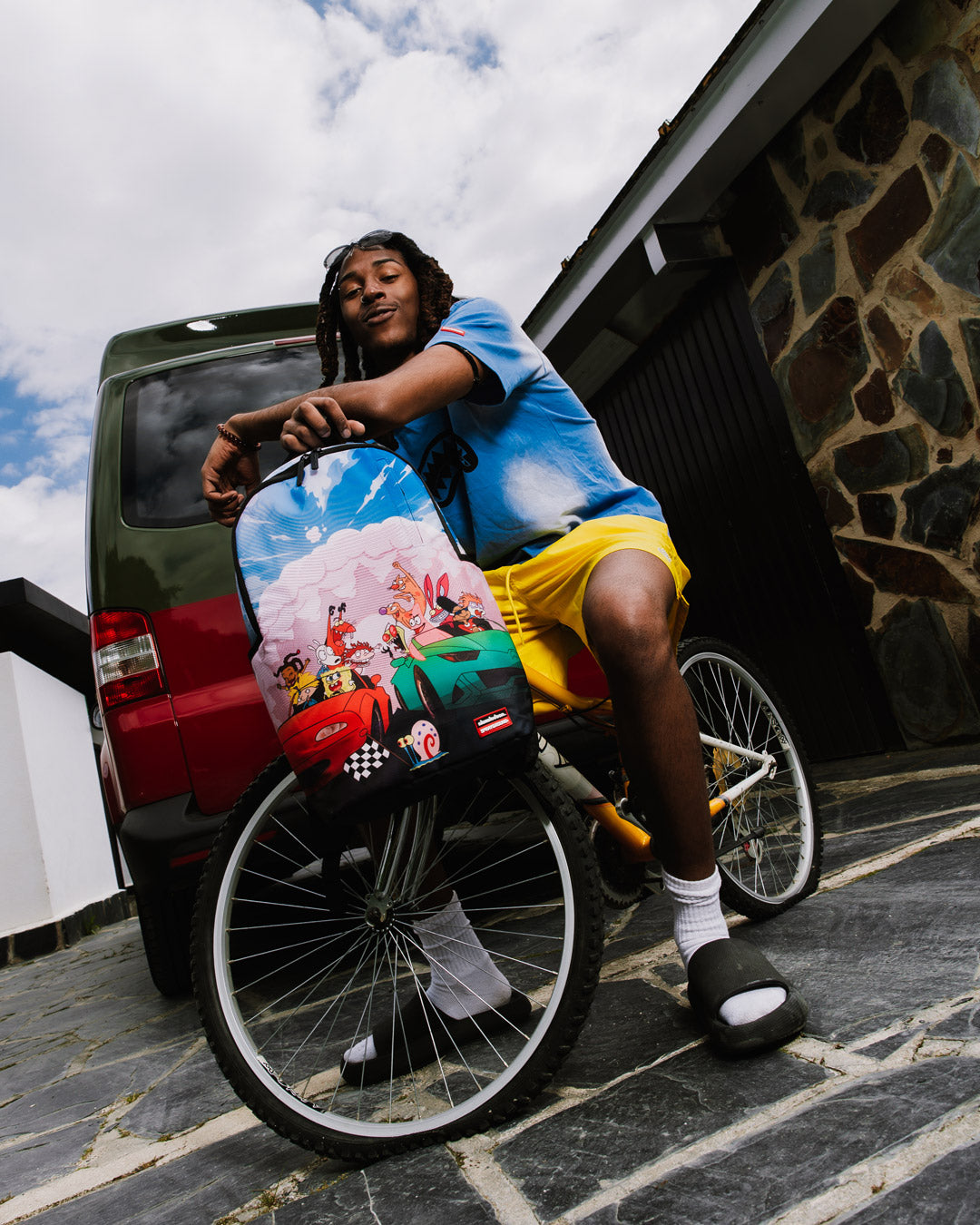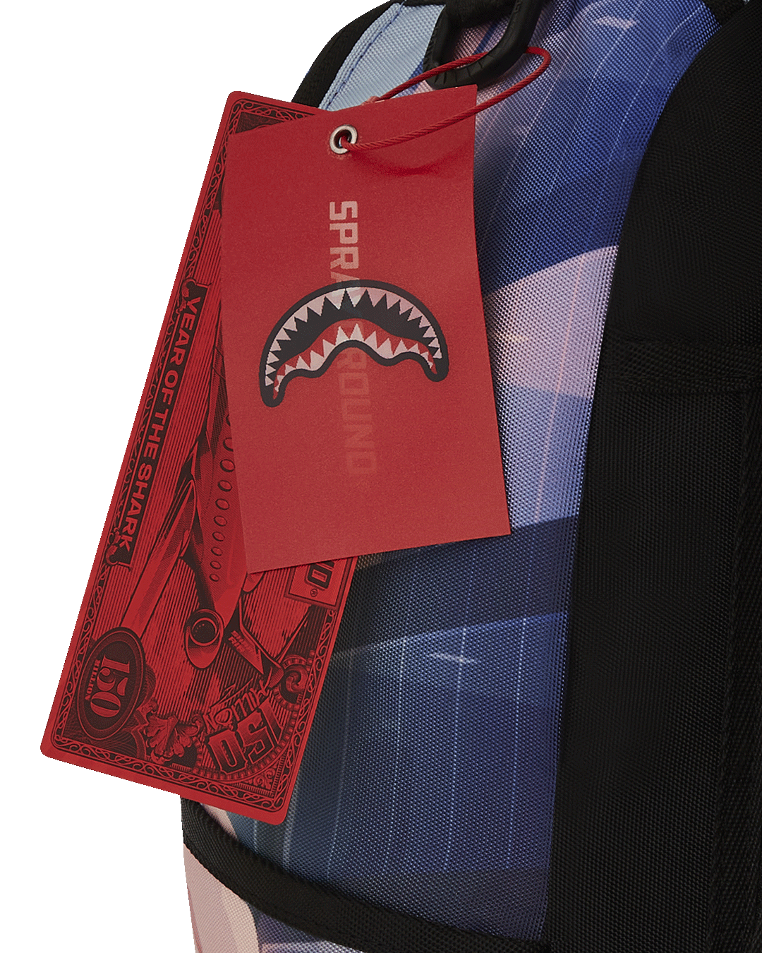 Dimensions: 18" x 6" x 11.5" • Front zipper pocket • Side pockets • Zippered Stash pocket • Separate velour sunglass compartment • Ergonomic mesh back padding • Adjustable Straps for custom sizing • Gold zippers with metal hardware • Metal "Sprayground Authentic" badge • Slide through back sleeve connects to carry-on luggage to free your hands