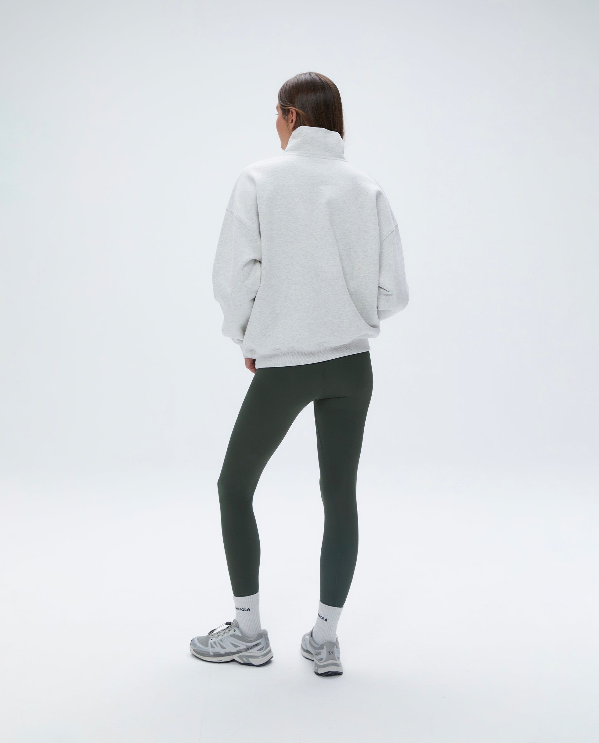"A" Oversized Funnel Neck Zip Sweatshirt - Light Grey Melange/Dark Olive