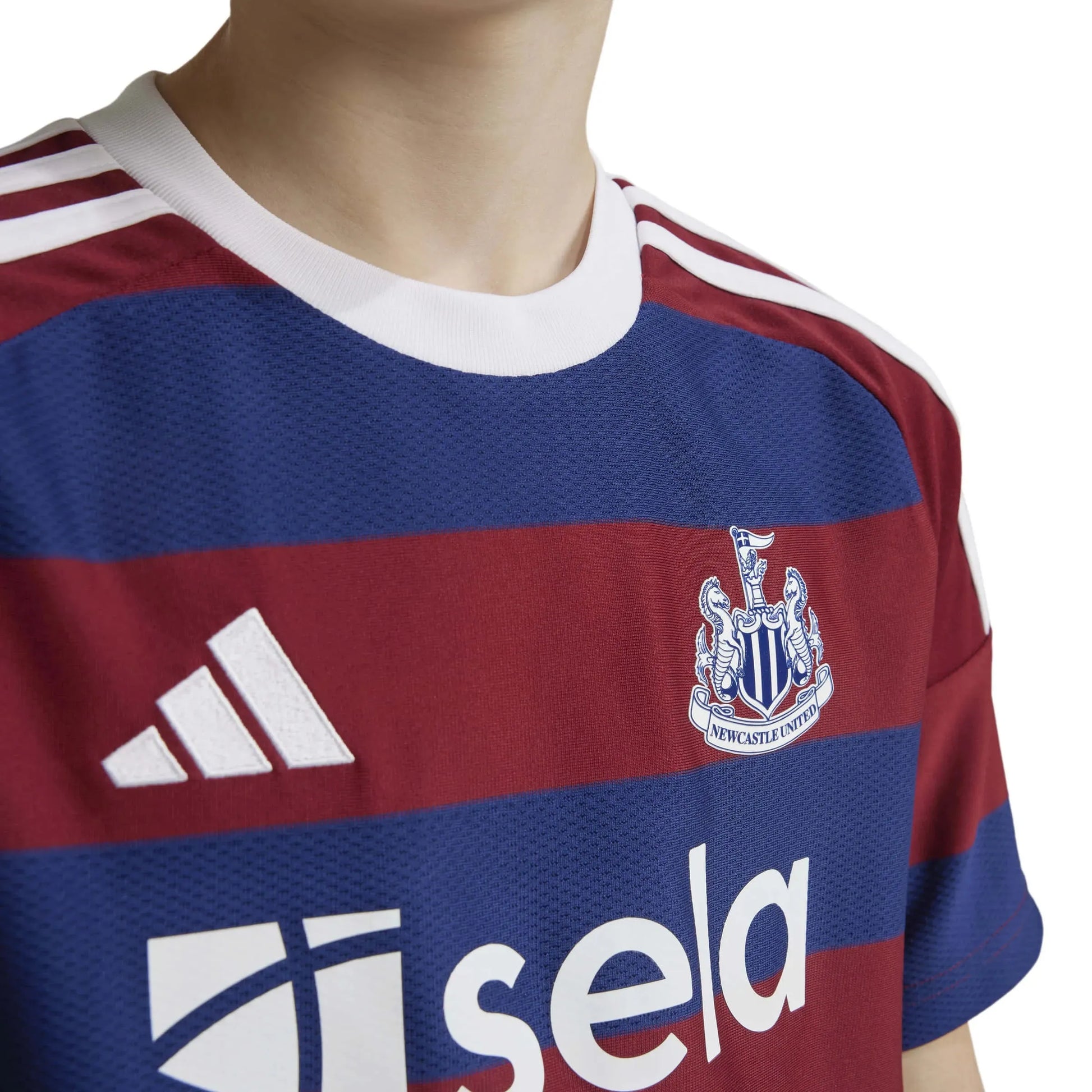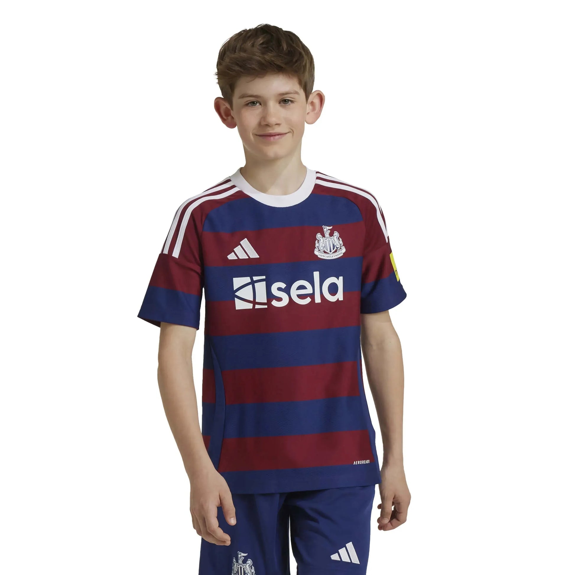 An iconic adidas kit rebooted. With its swashbuckling football, the 95/96 season is an unforgettable one for Newcastle United FC fans. So with the Magpies wearing the 3-Stripes once more, this juniors' jersey nods to the navy-and-burgundy away shirt that almost carried the club to the title. Created for young fans, this version has moisture-managing AEROREADY and a premium embroidered crest.