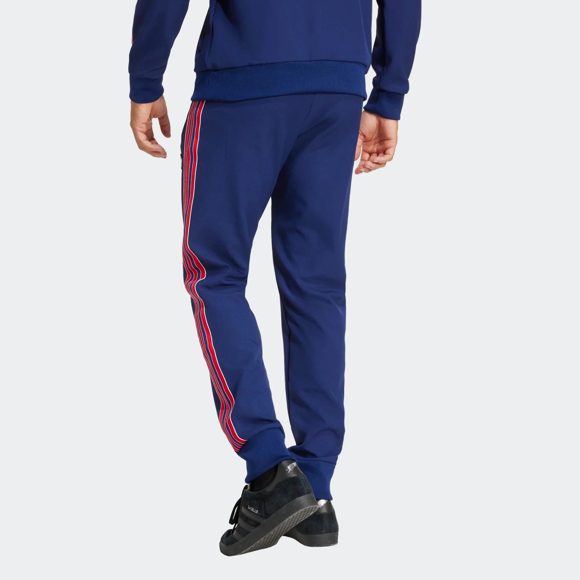 - Whether you're cheering Arsenal on from the stands or the sofa, these retro-inspired soccer track pants are your perfect companion. Displaying a vintage cannon badge and iconic adidas Trefoil, they lean heavily on '80s terrace style. Smooth twill and ribbed cuffs keep you comfortable while you stand out from the crowd.