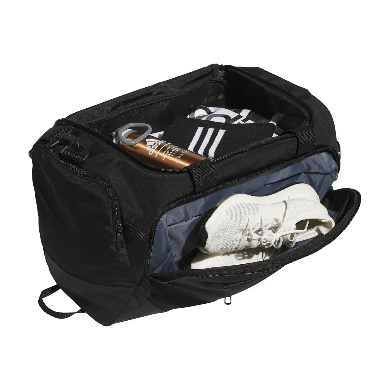 • For comfort, this adidas soccer bag has wrapped webbing haul handles and a removable and adjustable shoulder strap.
