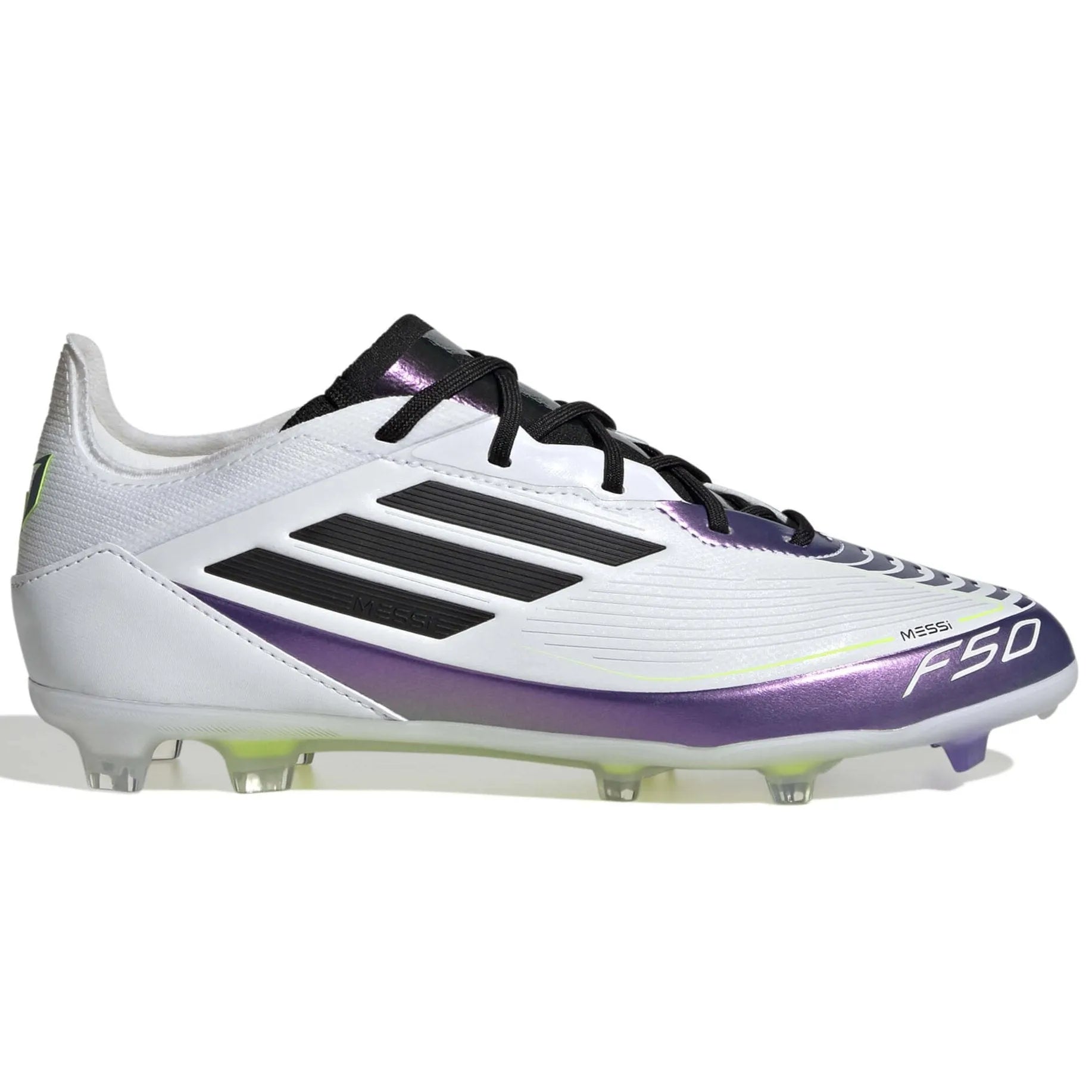 F50 speed, Messi style. In 2024, Lionel Messi's range of adidas football boots are crafted to match his preferences even more closely. The flexible HybridTouch upper on these juniors' F50 Pro boots offers a comfortable fit. Underneath, a specialist outsole supports agility on firm ground.