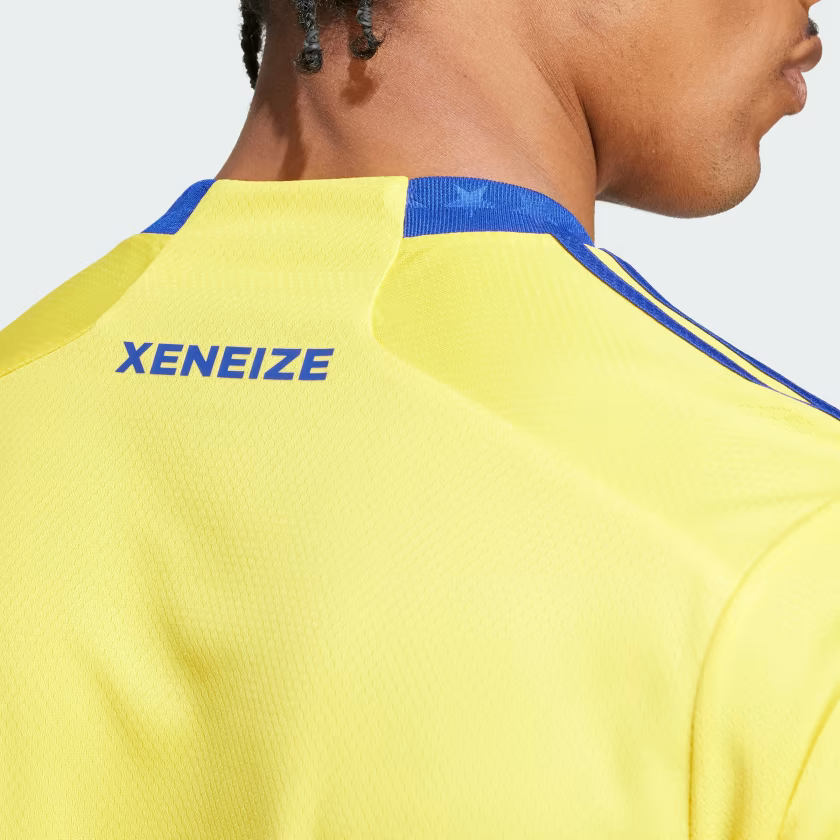 Proud Boca Juniors fans will already know the nautical tale of how the club settled on their home colors. This soccer jersey from adidas builds on that Swedish theme with a bright yellow base. The hoop that bisects it? That's a nod to the enormous flag supporters unfurl before home games. Created for players and fans, this shirt includes moisture-wicking AEROREADY and a woven badge. Made with 100% recycled materials, this product represents just one of our solutions to help end plastic waste.