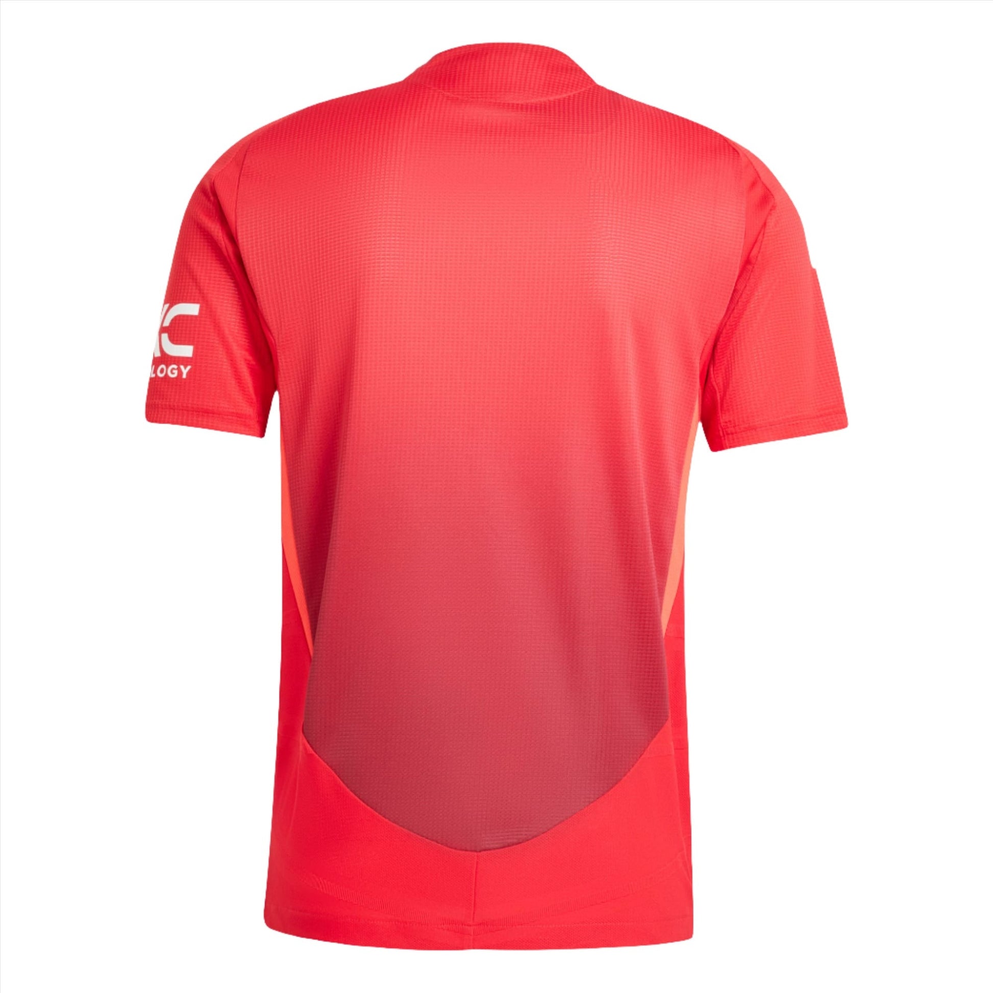 Manchester United at Old Trafford. Home fans adore them and even rivals can't ignore them. In 24/25, the club's timeless home jerseys shout even louder with bright red inserts on the sides and a subtle gradient design on the front and back. This adidas authentic version includes ventilating HEAT.RDY and lightweight details for confident soccer.This product is made with 100% recycled materials. By reusing materials that have already been created, we help to reduce waste and our reliance on finite resources and reduce the footprint of the products we make.