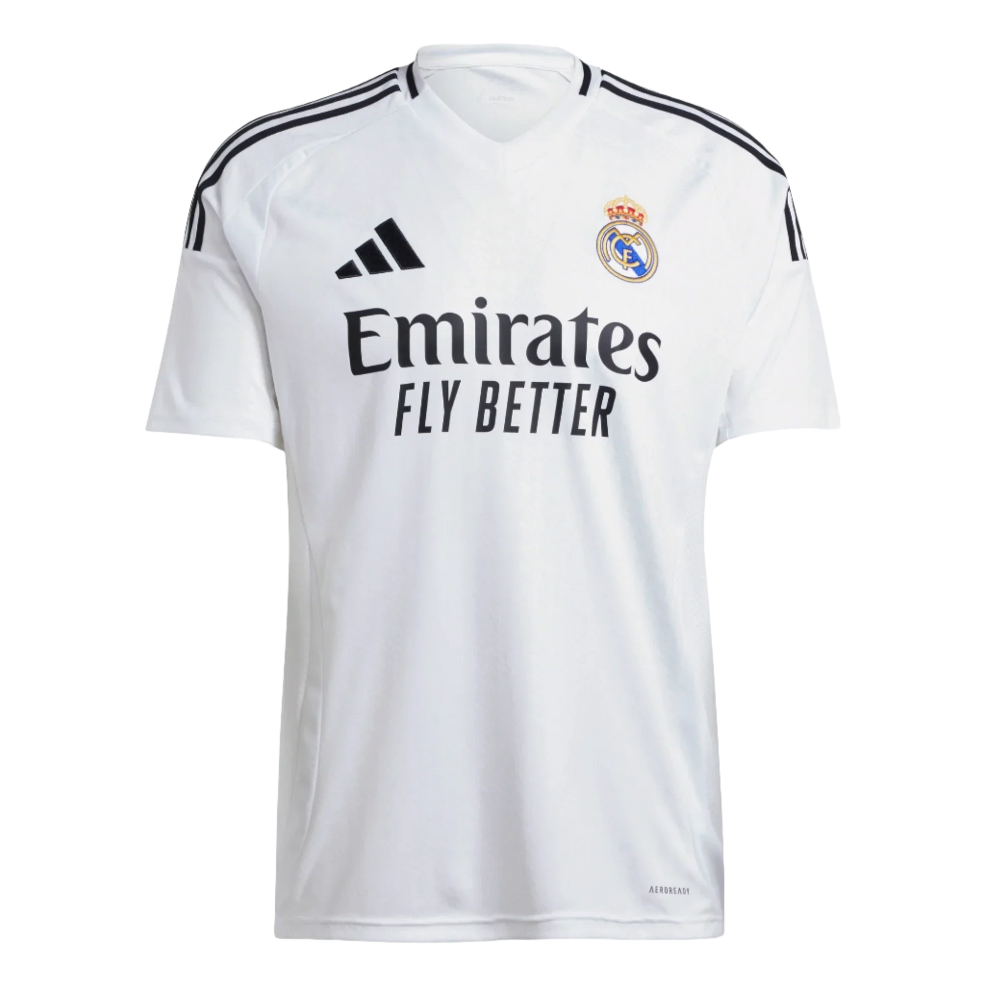 • Highlighting the rise of a brand-new soccer generation. Created to complement Real Madrid's shimmering skills, this adidas away jersey stands out with a vibrant orange base and an abstract, star-inspired design. Its dark blue details include an embroidered club badge. Behind the scenes, moisture-managing AEROREADY will keep fans on top of their game.