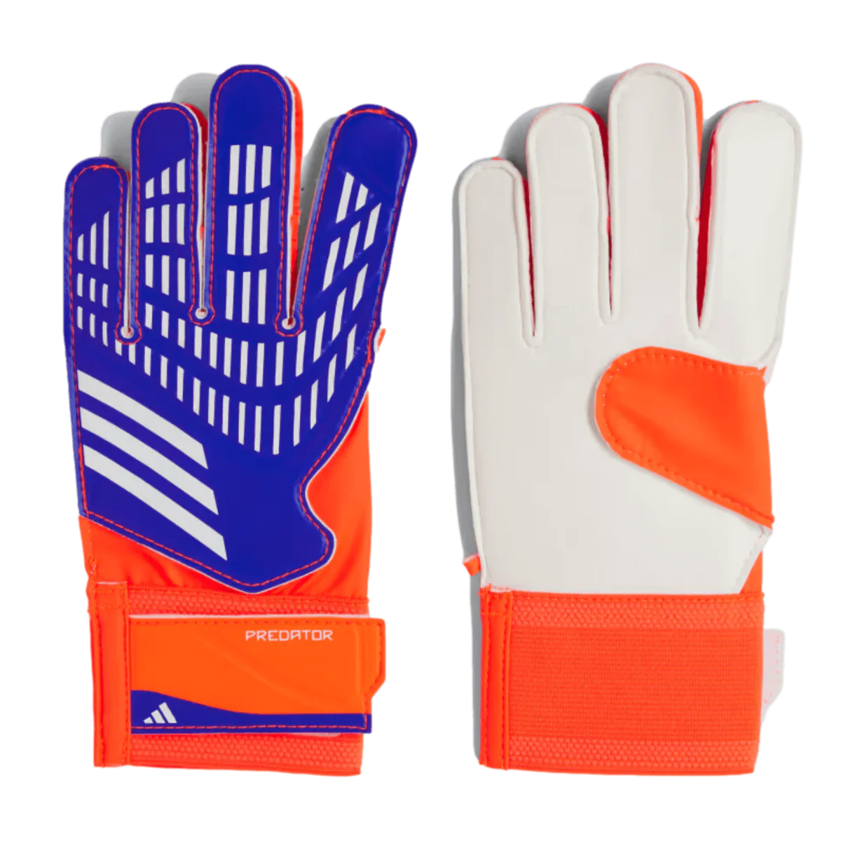 Boss your box in adidas goalkeeper gloves that keep your game on point. Created to offer a good fit, the stretchy wrist strap on these juniors' Predator Training soccer gloves provides stability for comfortable handling. The Soft Grip latex palm adds cushioning, grip and durability in all weathers.