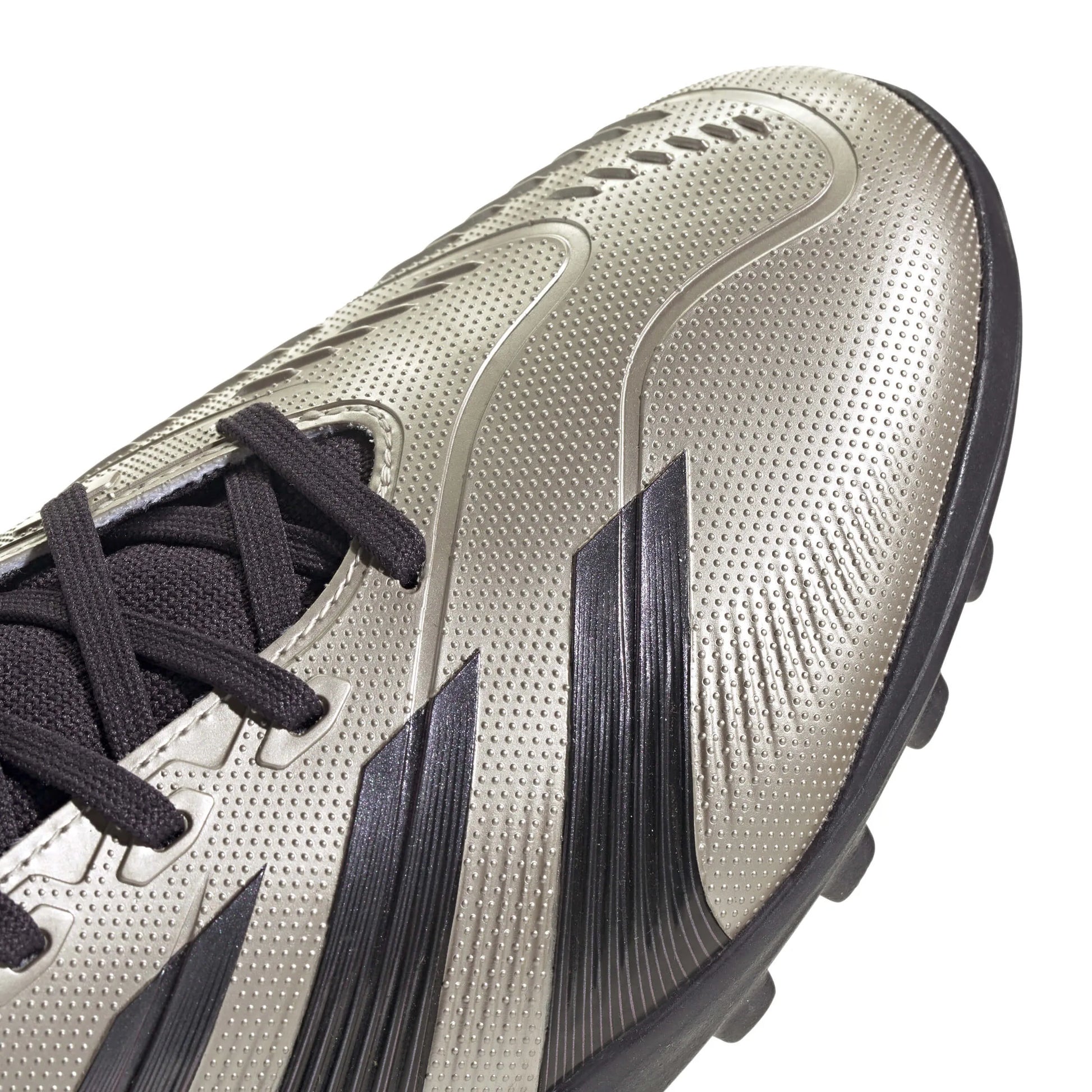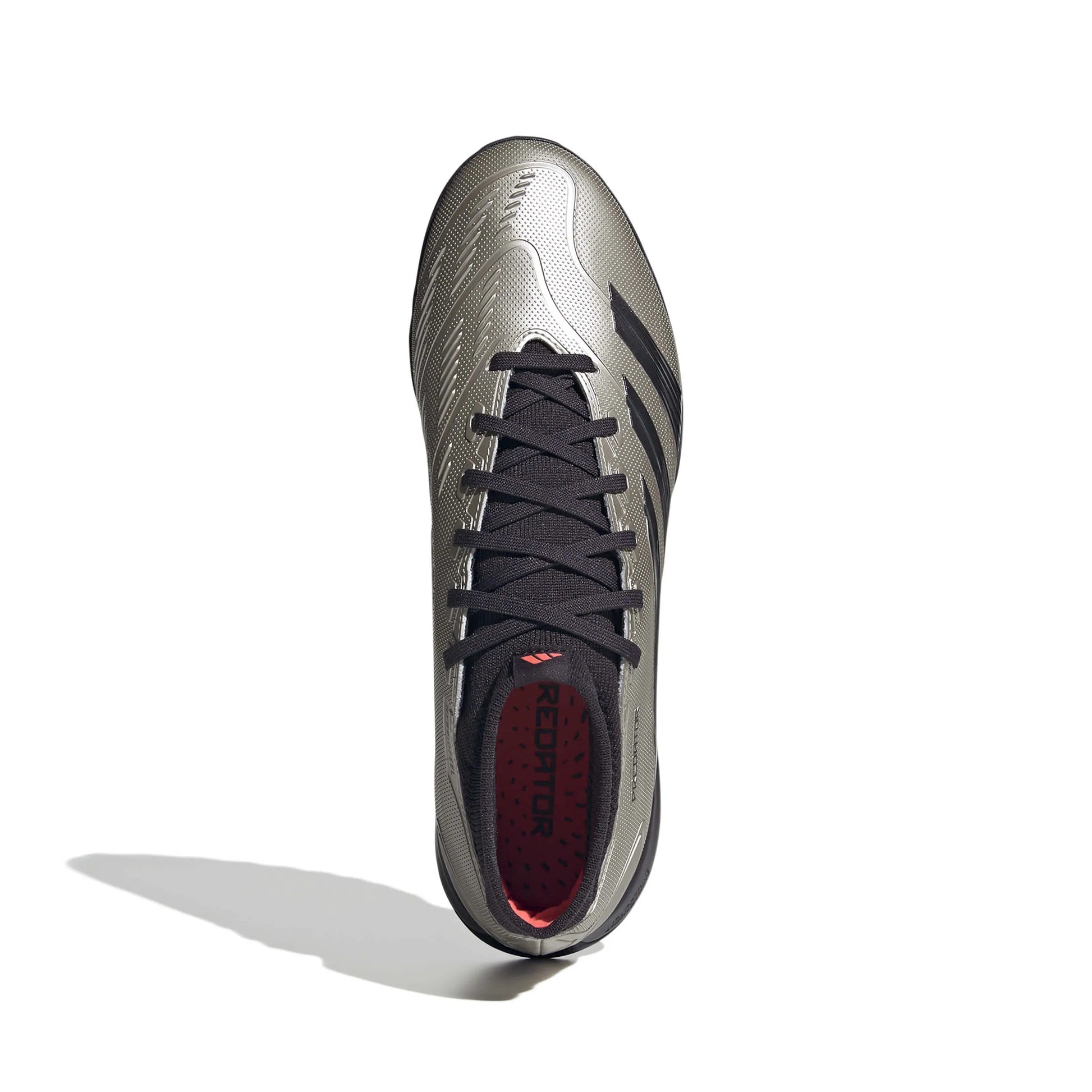 When the goal's in your sights, adidas Predator converts pressure into pinpoint accuracy. Covered in a 3D texture and featuring grippy Strikescale fins on its medial side, the Hybridfeel upper on these League football boots is optimised for accurate shooting. On top, a stretchy Adiknit collar delivers a stable ride. Down below, a lug rubber outsole offers control on artificial turf courts.