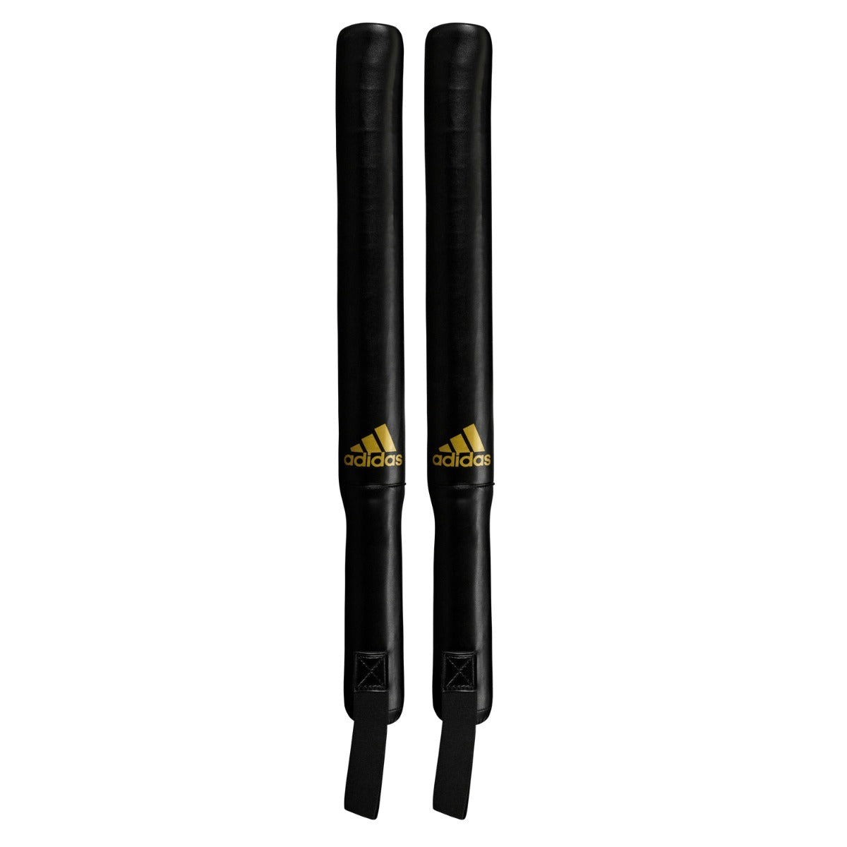 The Adidas Striking Sticks offer an increased training regimen to help perfect punching and striking precision in boxing workouts.  Trainers can now work offense and defense with their fighters, with more movement, tapping and lightly swinging to keep boxers on defense.  Ideal for improving boxer’s head movement and defense.  Through targeted technique training, trainers can also help improve fighter’s accuracy and efficiency.   The striking sticks also benefit trainers with less stress and tension on the wrists, elbows and shoulders, in deference to punch mitts.  The striking sticks are slightly flexible for a premium punching target and ideal resistance.  Anatomical grip handle reduces hand fatigue for extended training time.