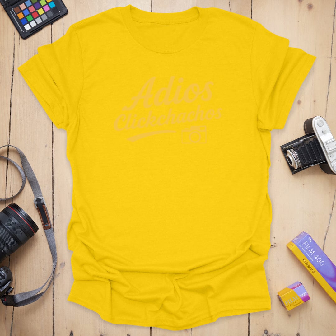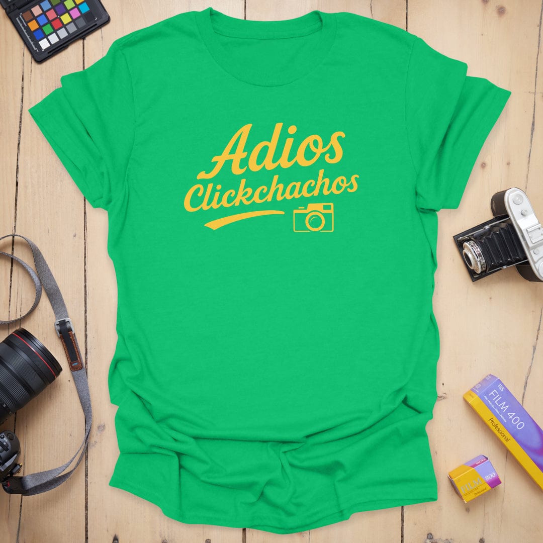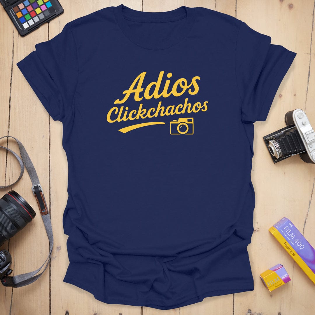 Say cheese and peace out ✌️ The "Adios Clickchachos" tee is your go-to farewell fit for when the shoot wraps and the light’s gone golden. With a bold script and a cheeky camera icon, this shirt says exactly what you're thinking after a long day behind the lens. Soft, comfy, and ready for your next photo adventure (or exit). 📸👋