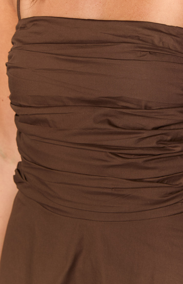 Get ready to turn heads in our charming Aiden Brown Lace Up Mini Dress! With gathered details on the bust and an open back featuring strappy accents, this dress adds a fun and flirty vibe to any occasion. Perfect for parties or date nights, it’s your go-to for a standout look!